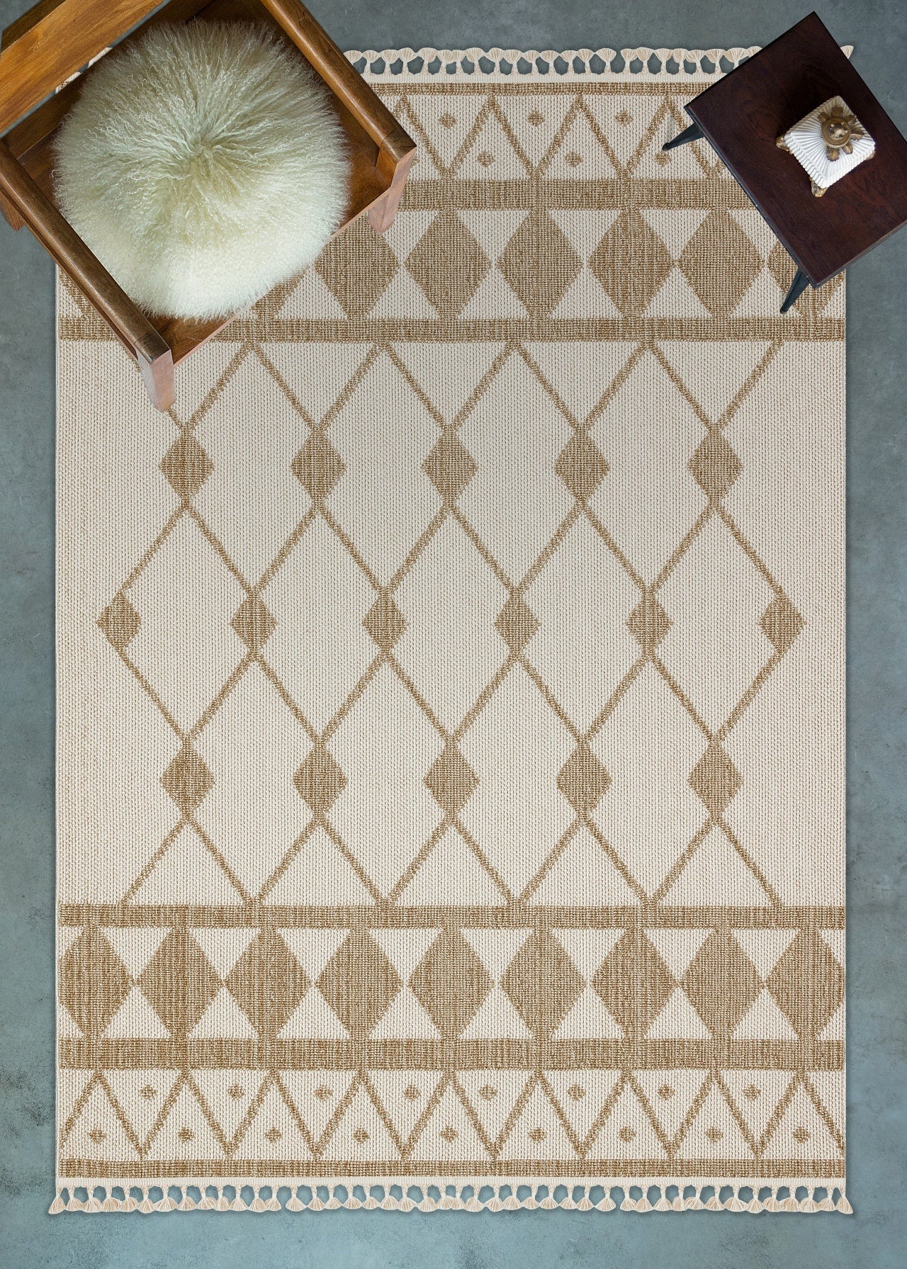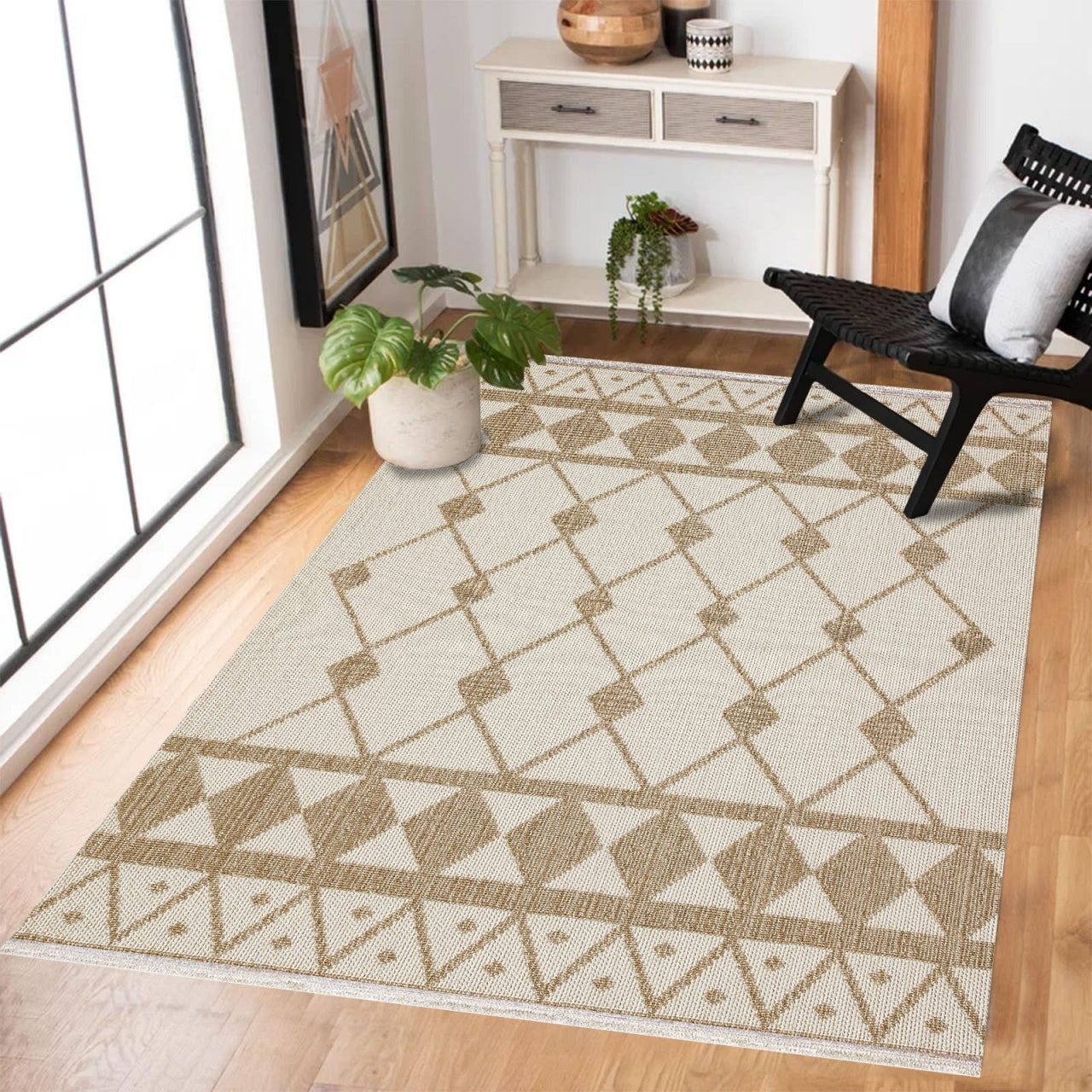 Bej Etnik Modern Etnik Desenli Halı