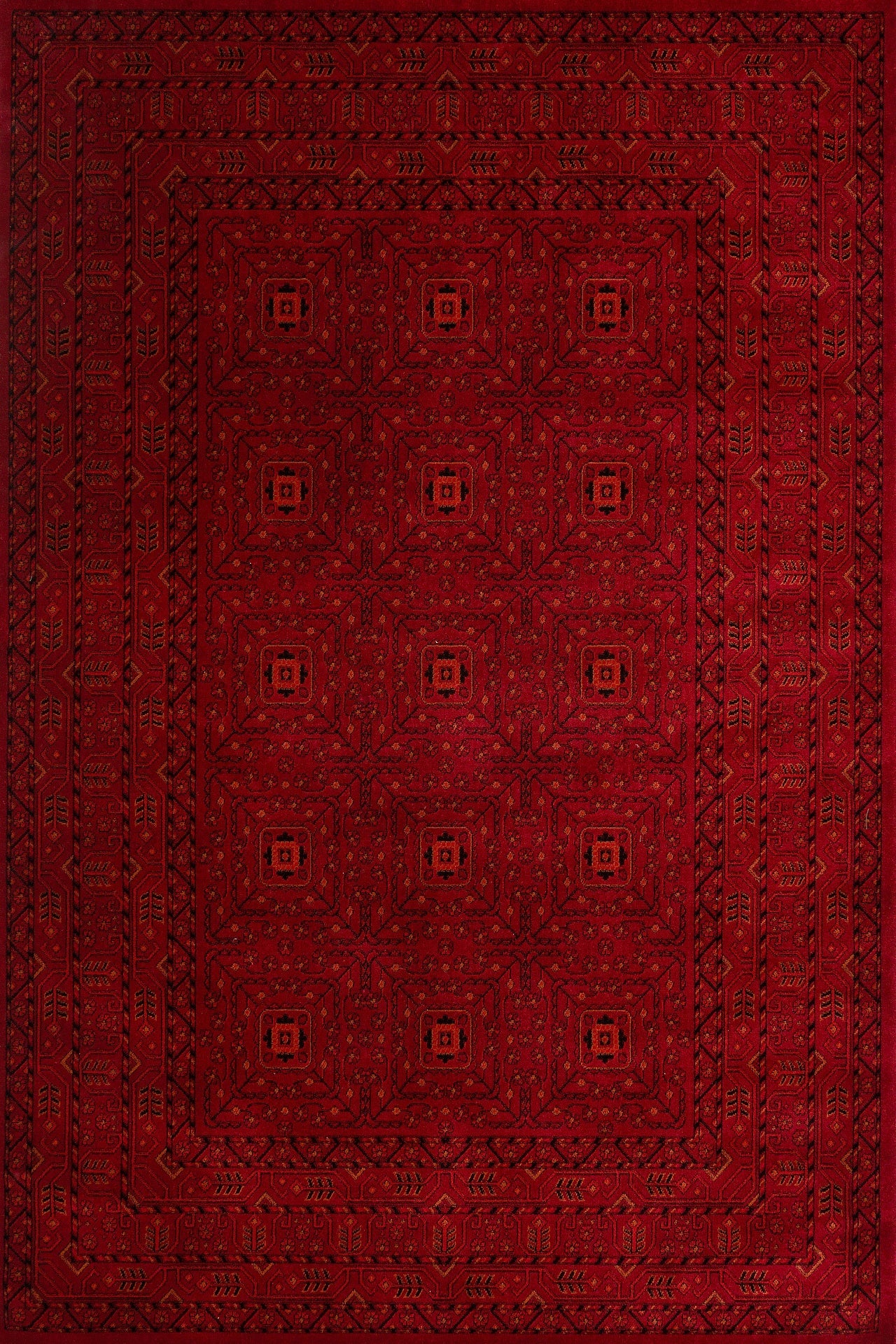 Kırmızı Etnik Modern Etnik Desenli Halı