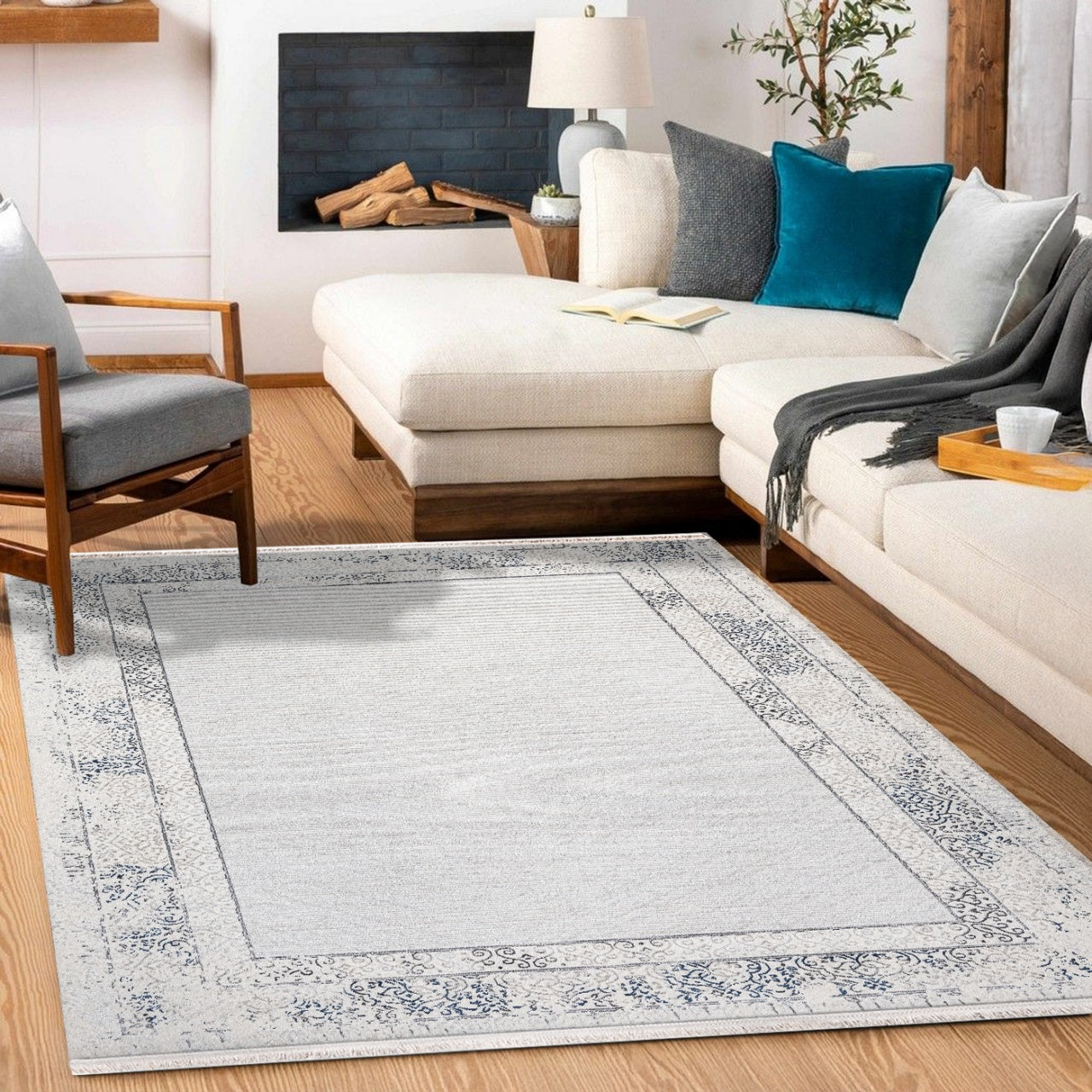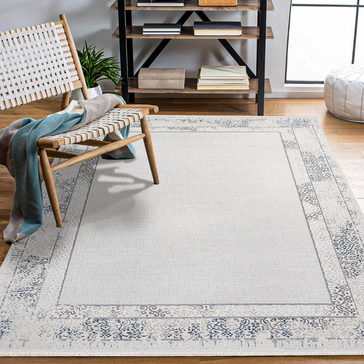 Oaklee Beyaz Çerçeveli Polyester Makine Halısı