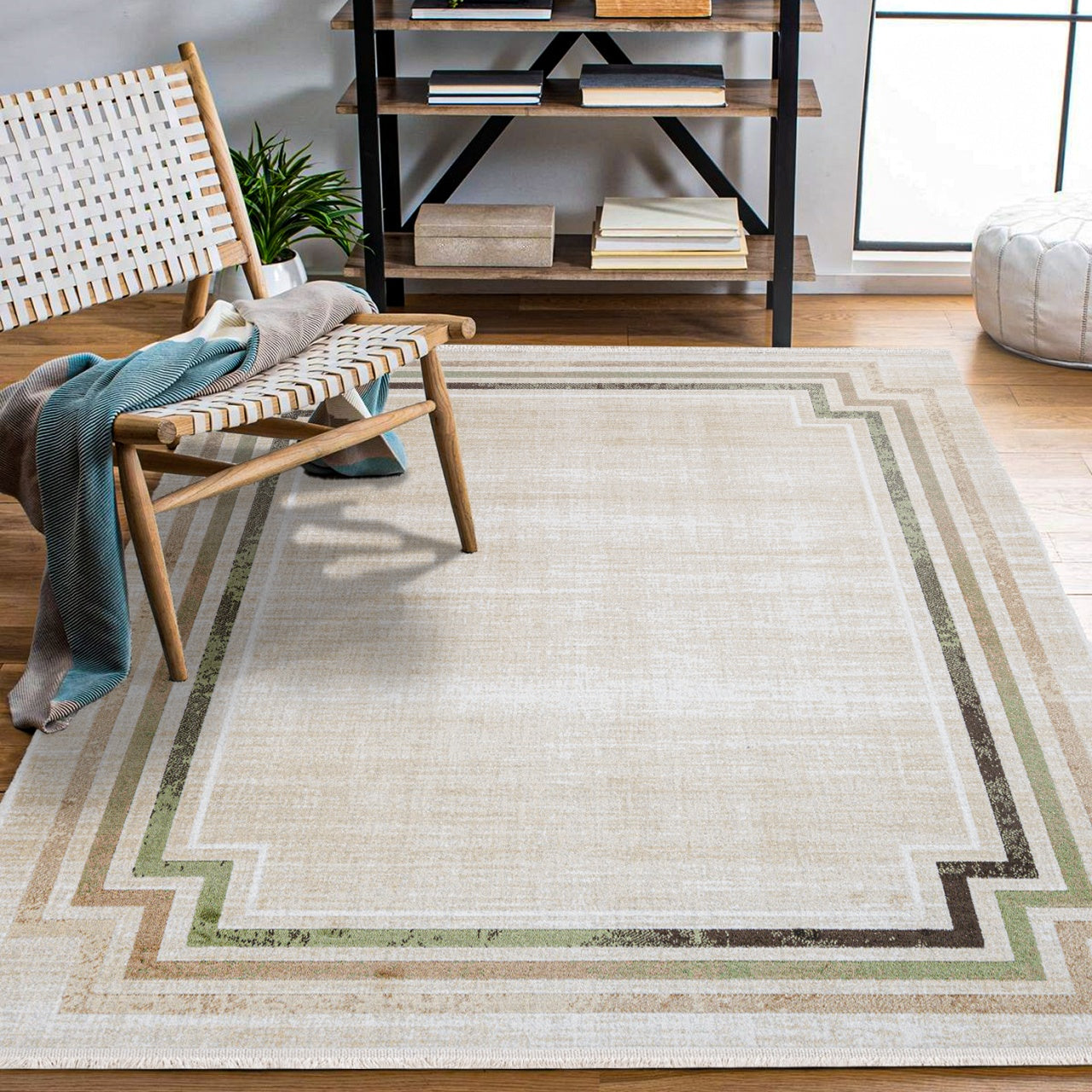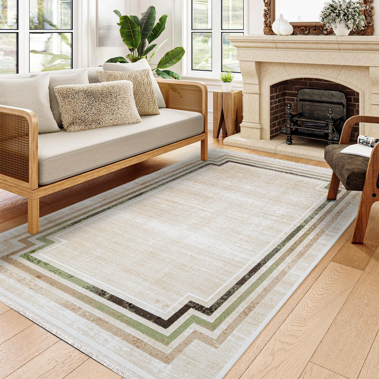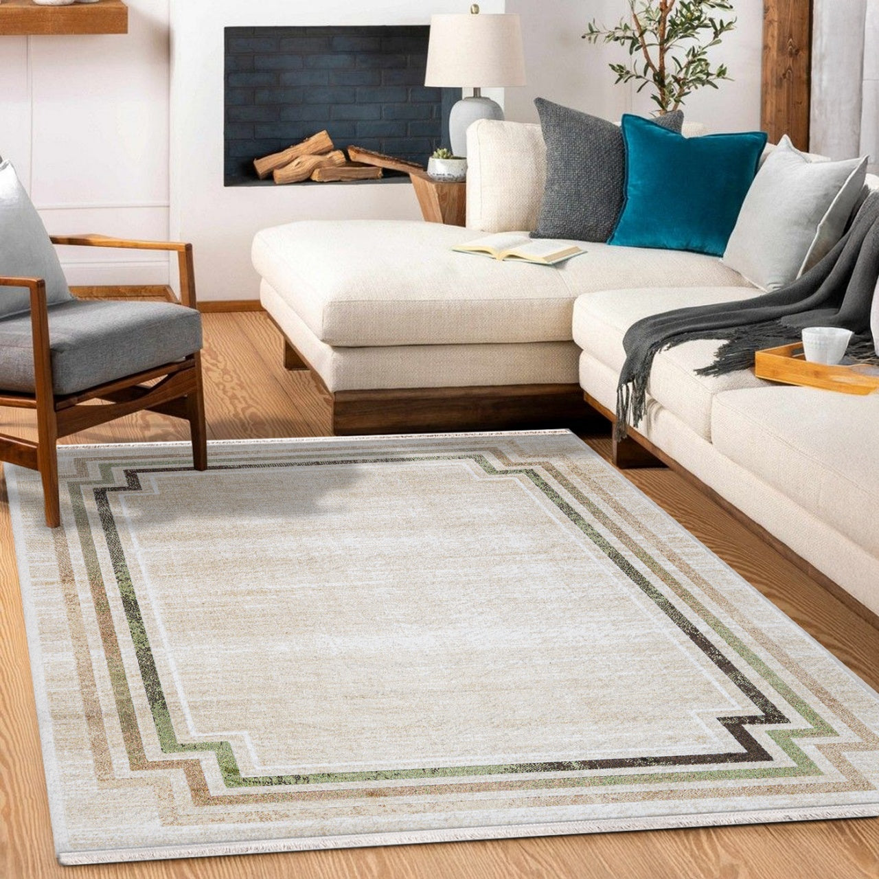 Priscilla Bej Çerçeveli Akrilik Makine Halısı