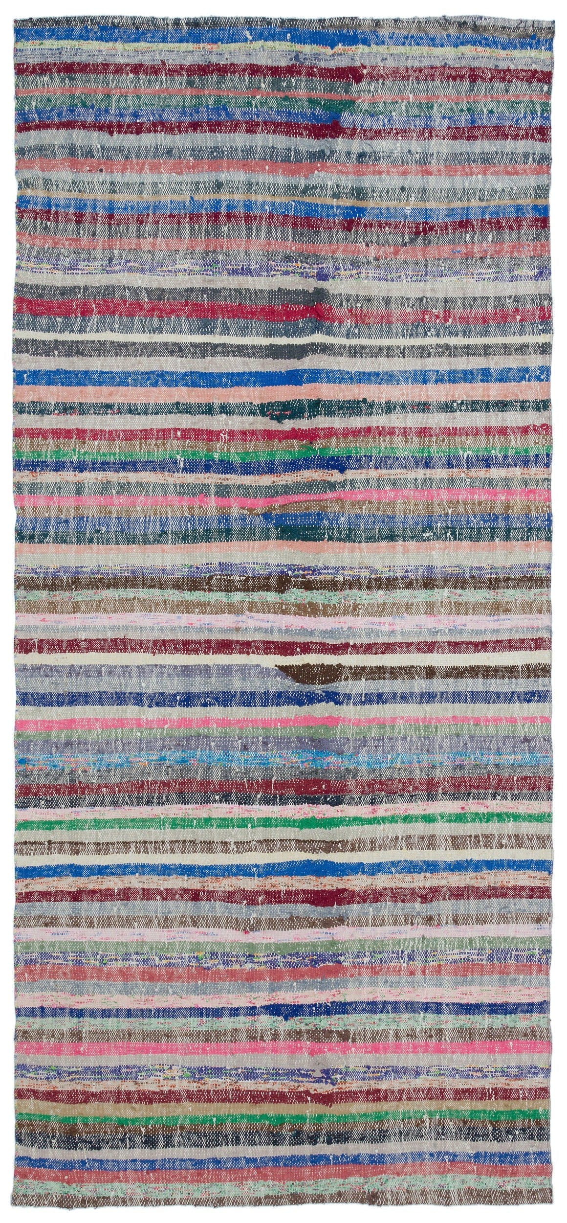 Girit Bej Çizgili Yün El Dokuma Halısı 143 x 313