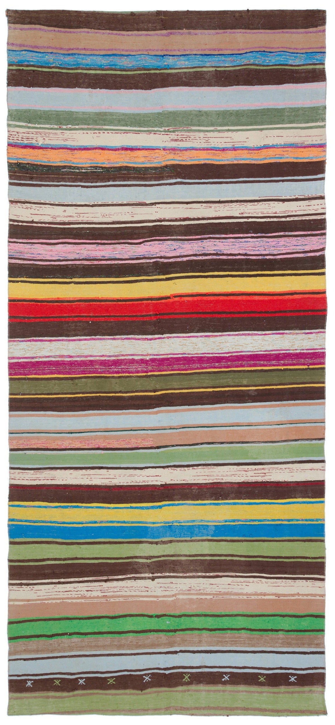 Girit Bej Çizgili Yün El Dokuma Halısı 172 x 380