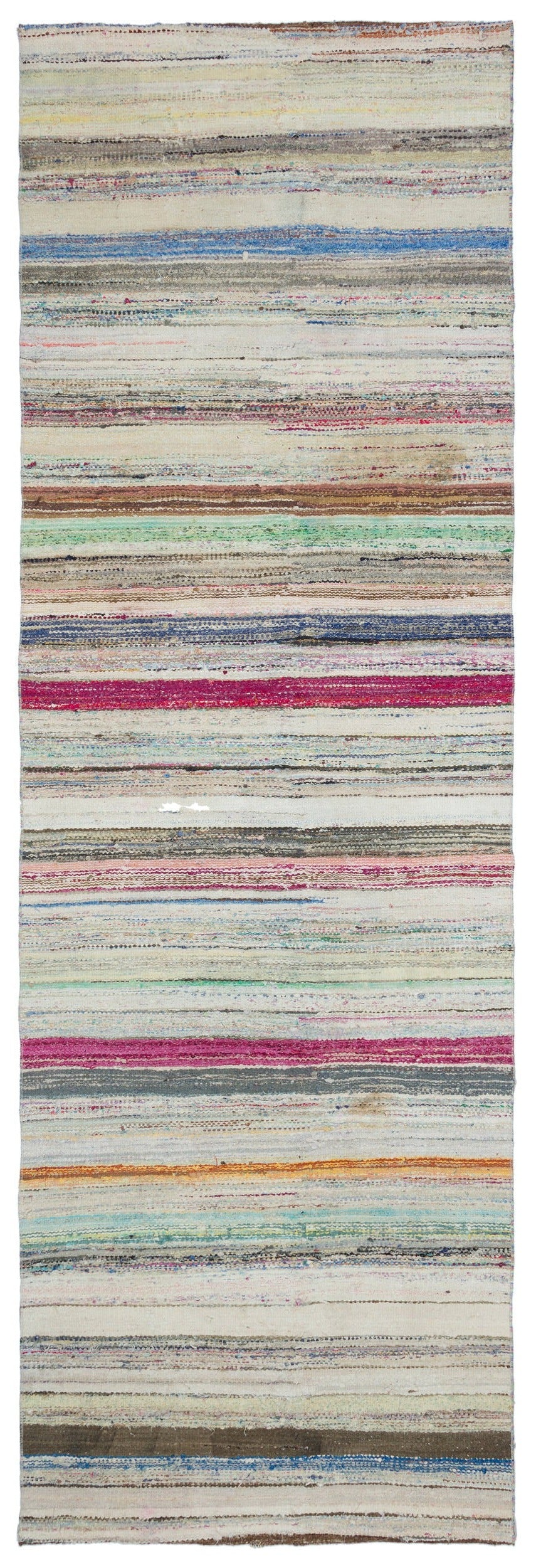 Girit Bej Çizgili Yün El Dokuma Halısı 124 x 376