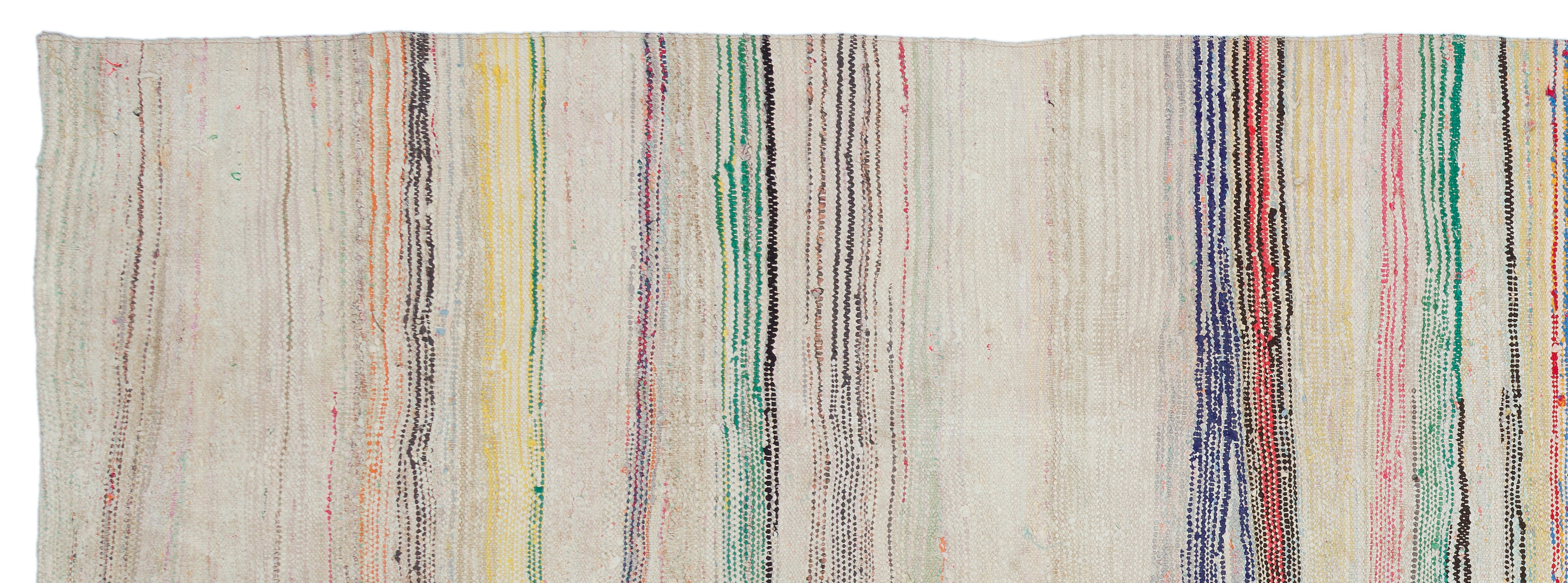 Girit Bej Çizgili Yün El Dokuma Halısı 135 x 377
