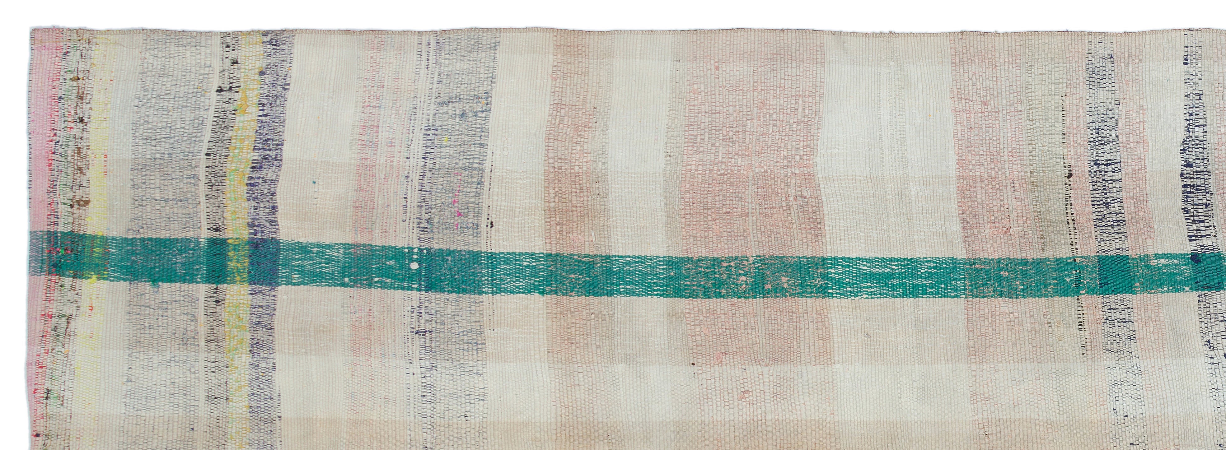 Girit Bej Çizgili Yün El Dokuma Halısı 125 x 365