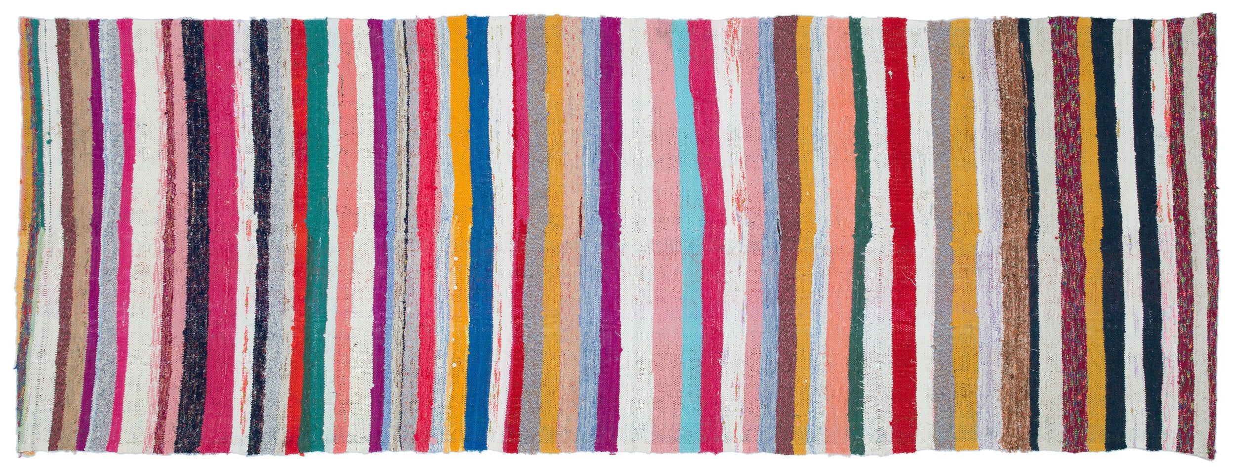 Girit Bej Çizgili Yün El Dokuma Halısı 130 x 348