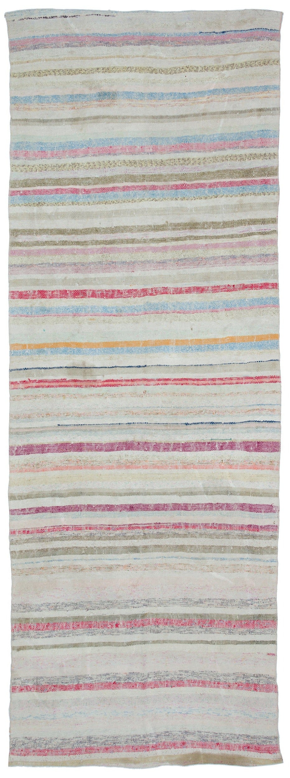 Girit Bej Çizgili Yün El Dokuma Halısı 138 x 380