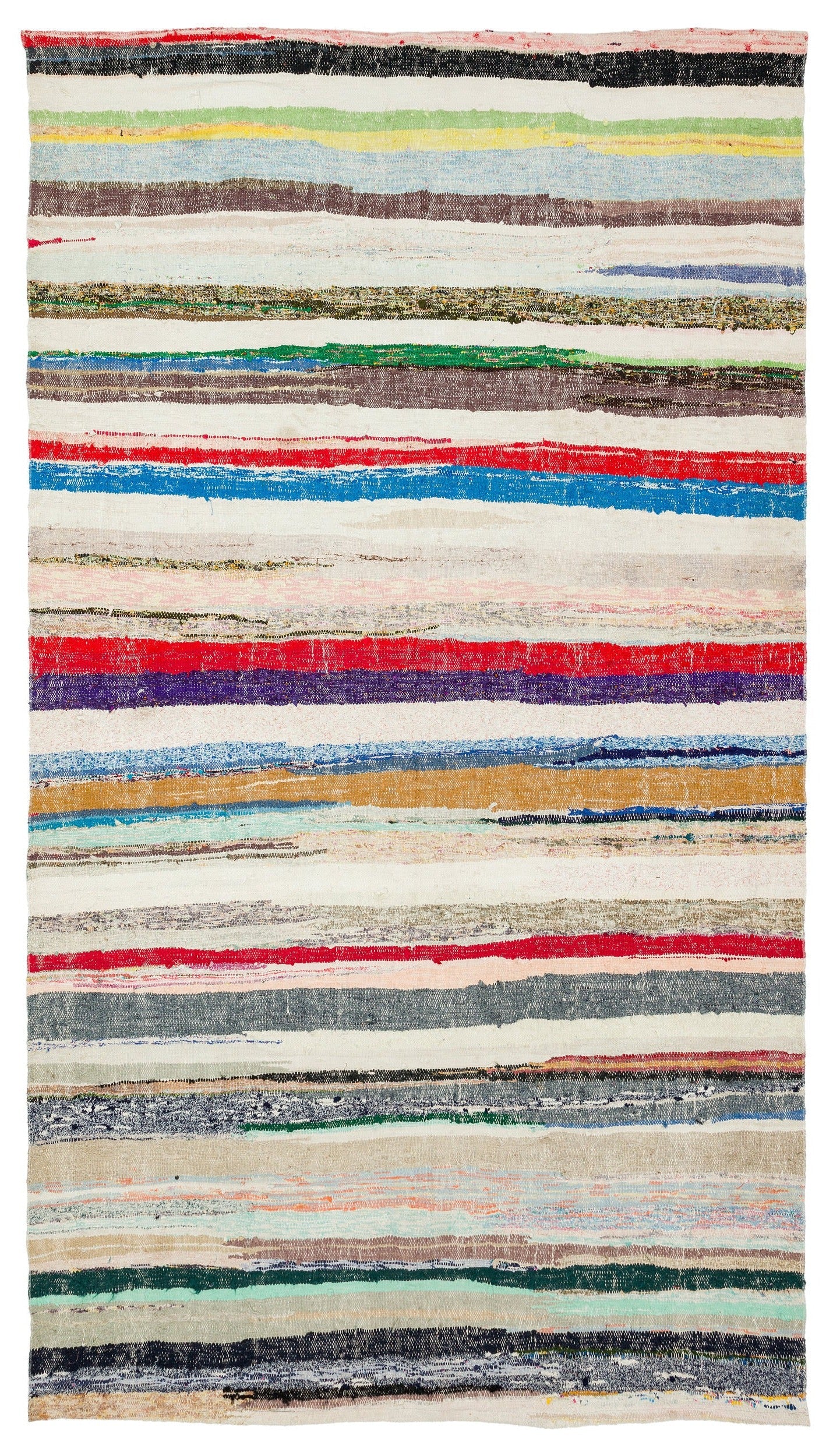 Girit Bej Çizgili Yün El Dokuma Halısı 174 x 309