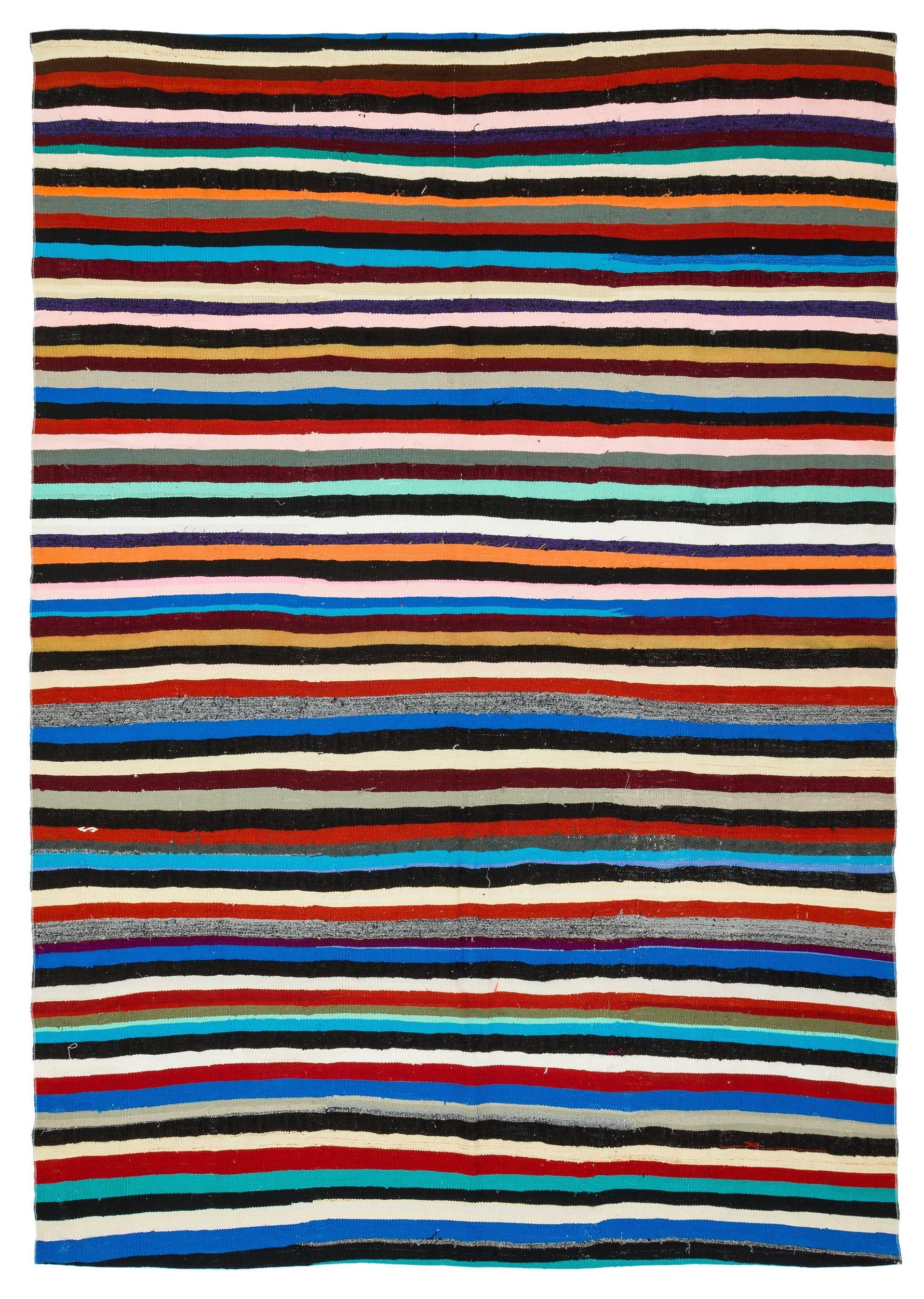 Girit Bej Çizgili Yün El Dokuma Halısı 196 x 281