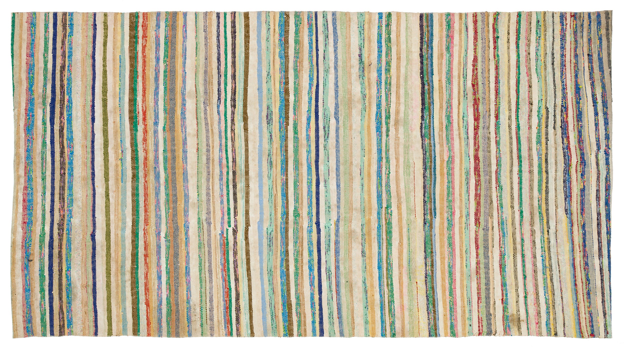 Girit Bej Çizgili Yün El Dokuma Halısı 164 x 306
