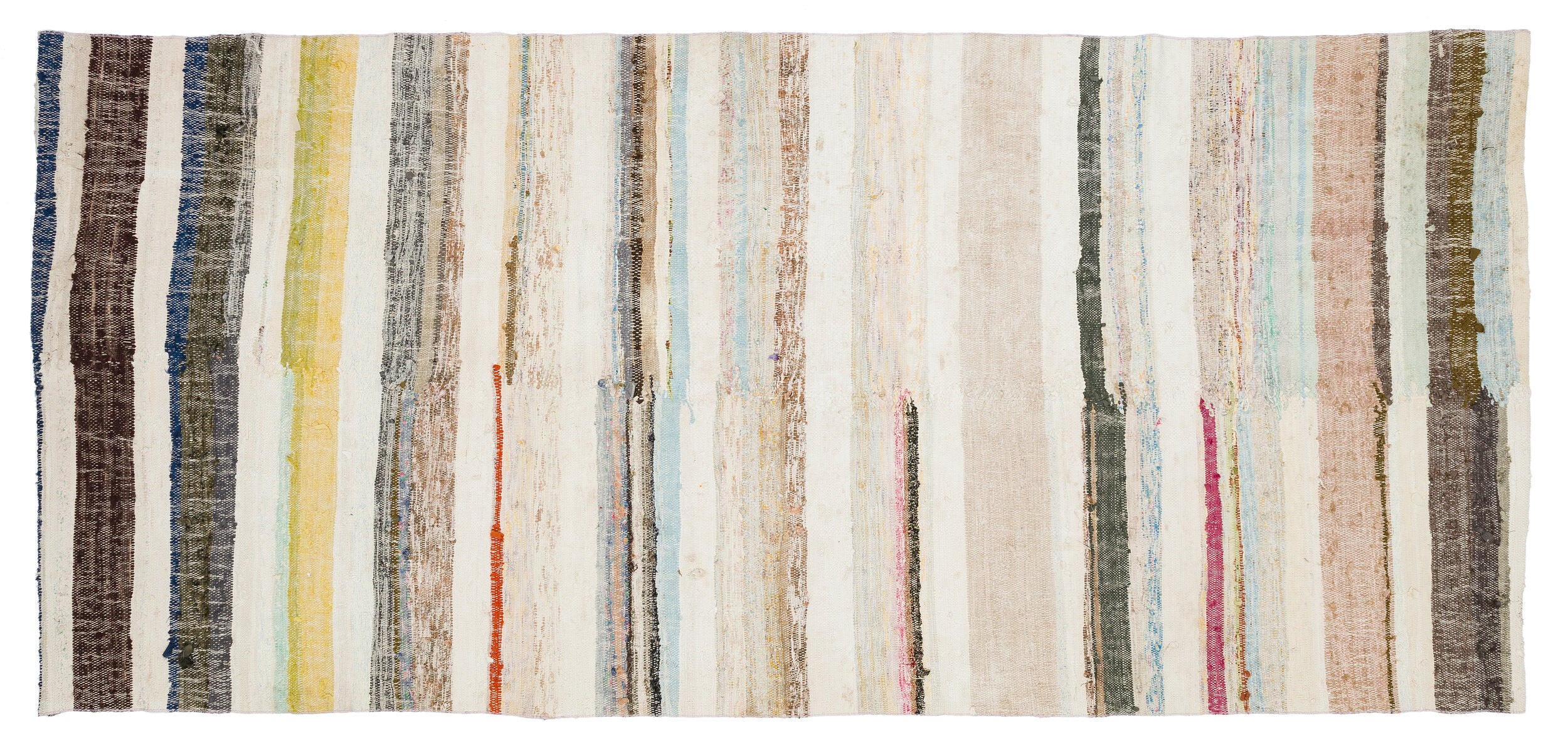 Girit Bej Çizgili Yün El Dokuma Halısı 154 x 333