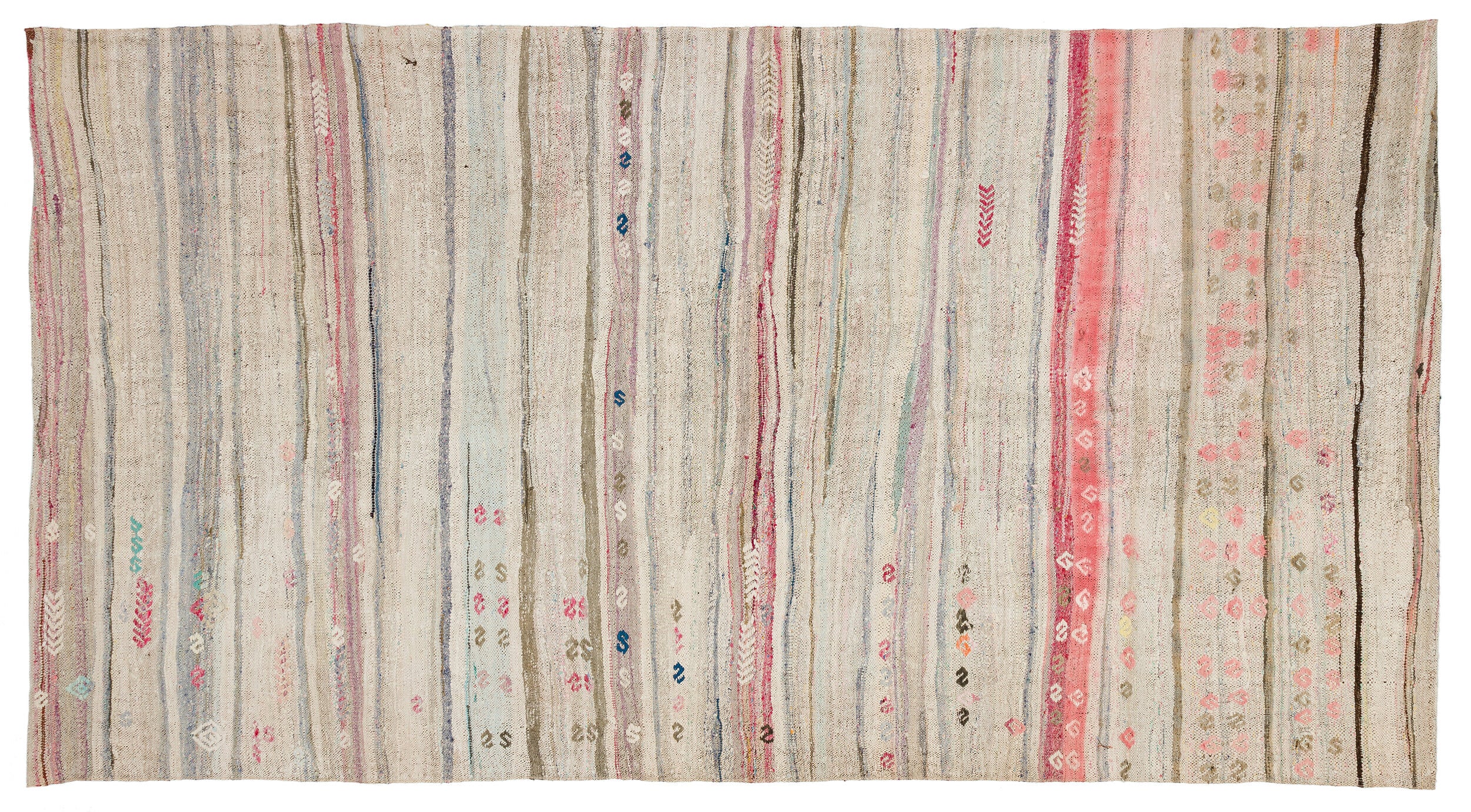Girit Bej Çizgili Yün El Dokuma Halısı 147 x 273