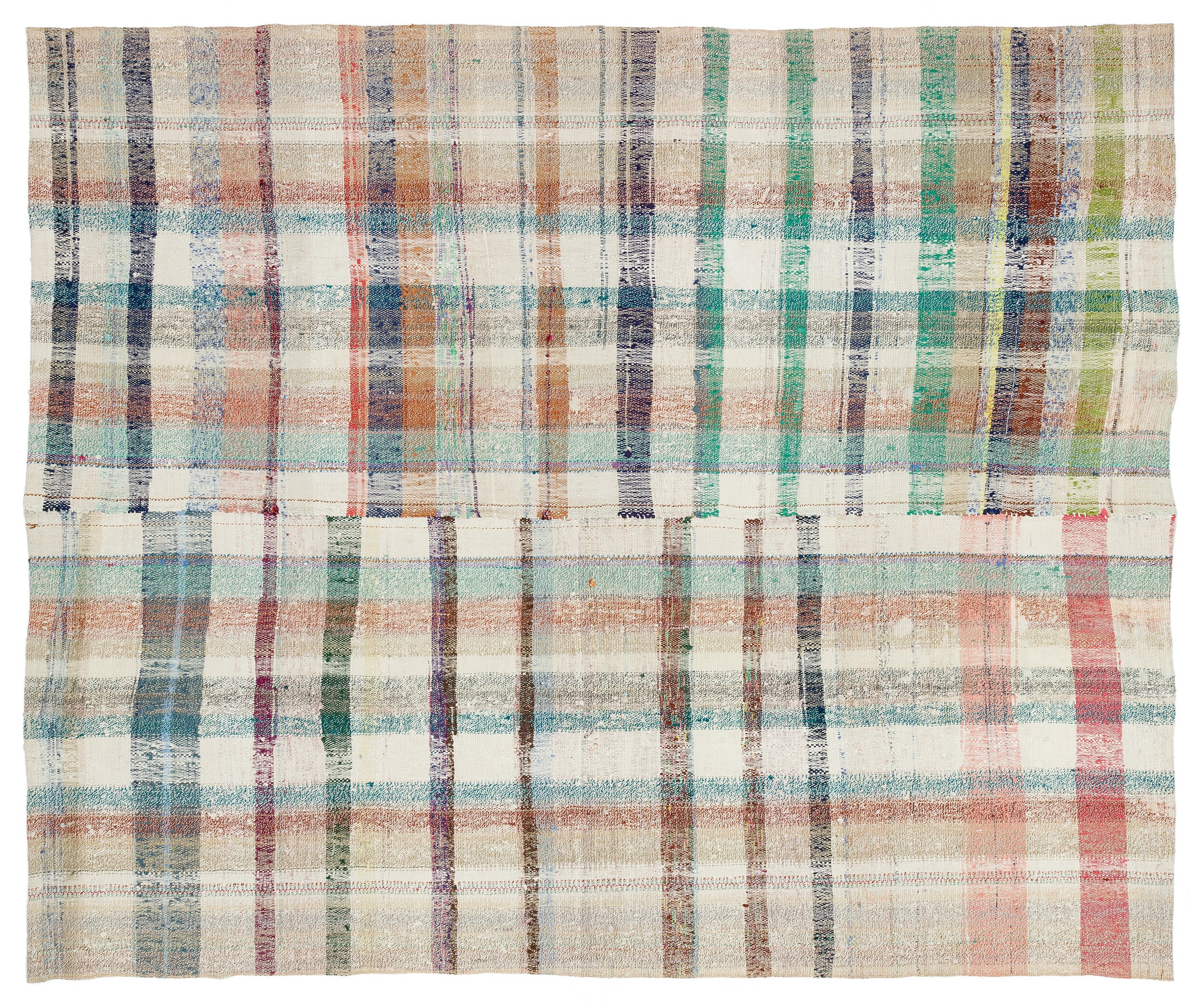 Girit Bej Çizgili Yün El Dokuma Halısı 201 x 240