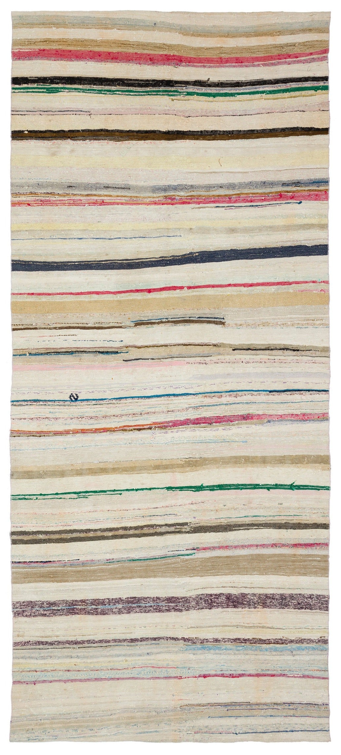 Girit Bej Çizgili Yün El Dokuma Halısı 166 x 377