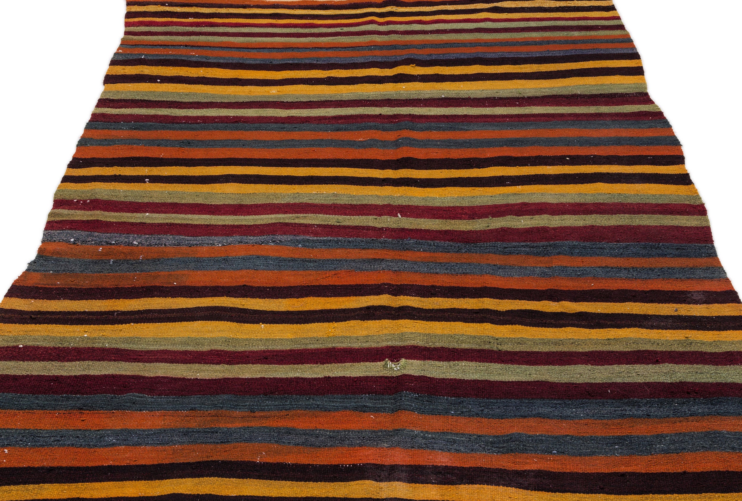 Girit Bej Çizgili Yün El Dokuma Halısı 166 x 326
