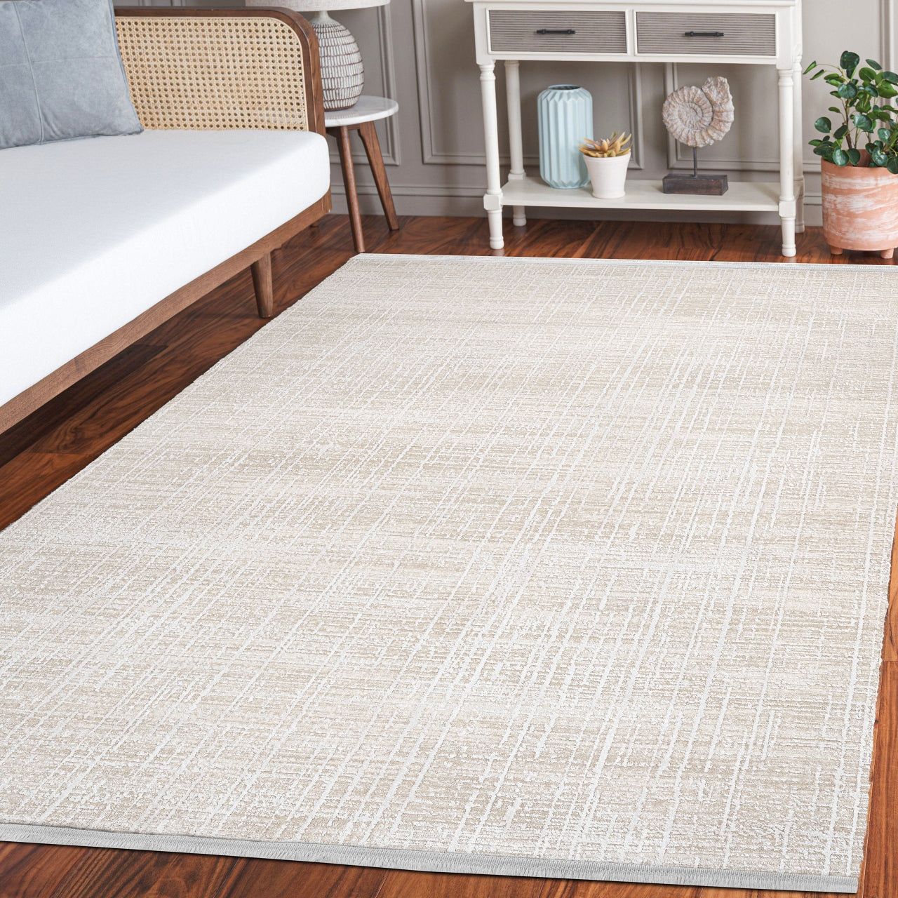 Shimmer Bej Çizgili Triko Akrilik Makine Alan Halısı