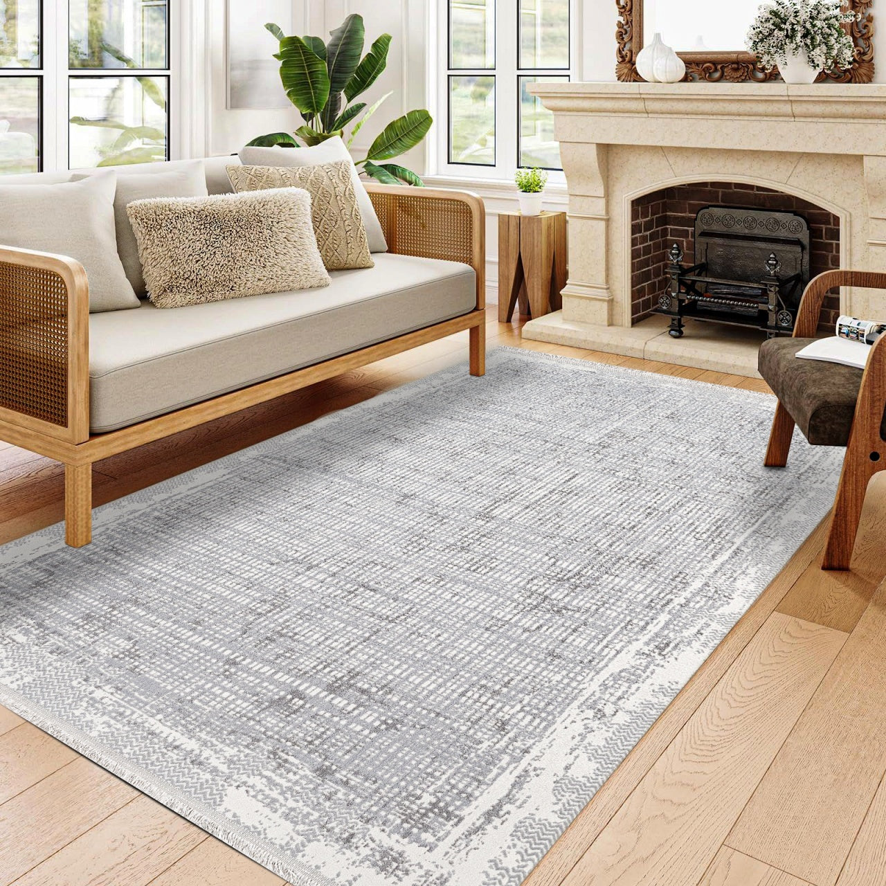 Skylar Gri Çizgili Polyester Makine Halısı