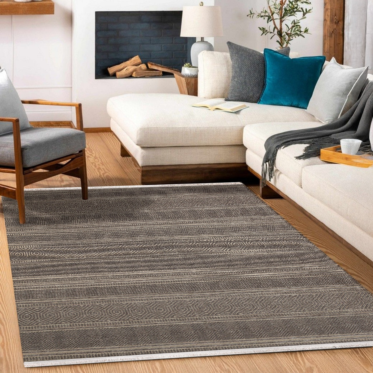 Gri Etnik Modern Etnik Desenli Halı | Makinada Yıkanabilir | Hav Toz Vermez | Leke Tutmayan | Kaymaz Taban | Dijital Makine Baskı | Salon Yolluk Mutfak Halısı