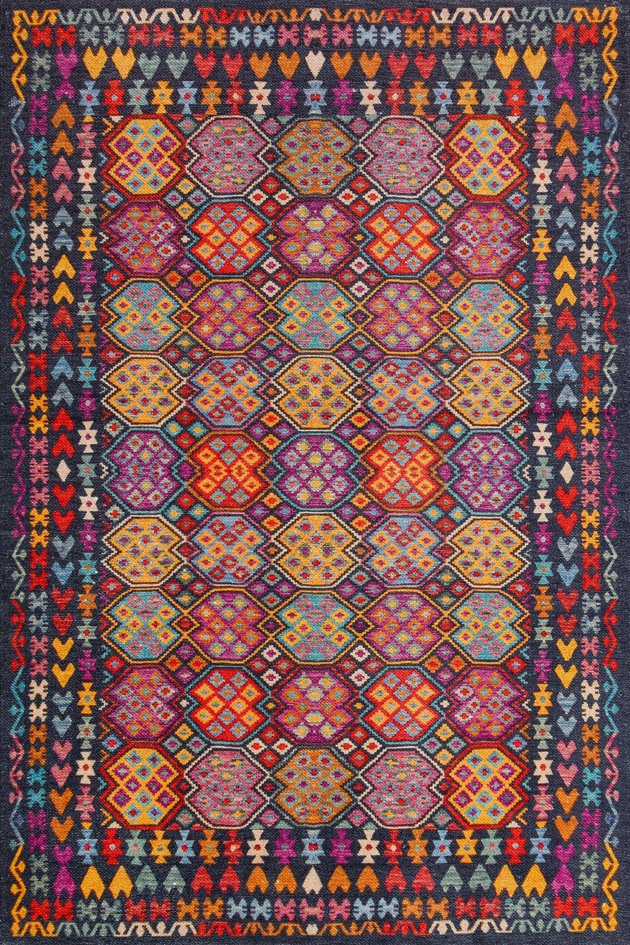 Koyu Mavi Etnik Modern Etnik Desenli Halı | Makinada Yıkanabilir | Hav Toz Vermez | Leke Tutmayan | Kaymaz Taban | Dijital Makine Baskı | Salon Yolluk Mutfak Halısı