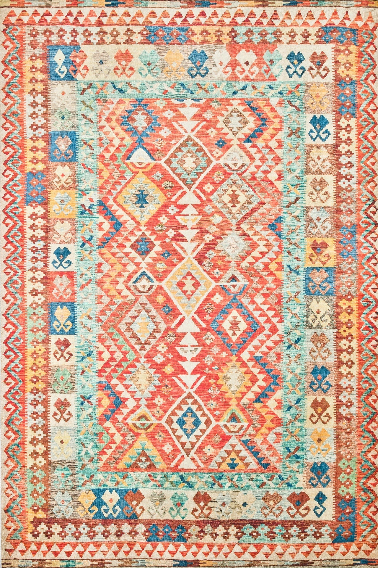 Kırmızı Etnik Modern Etnik Desenli Halı | Makinada Yıkanabilir | Hav Toz Vermez | Leke Tutmayan | Kaymaz Taban | Dijital Makine Baskı | Salon Yolluk Mutfak Halısı
