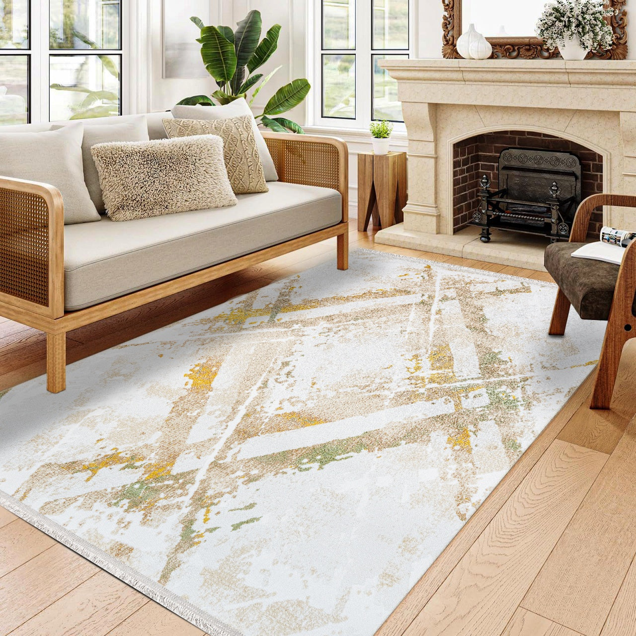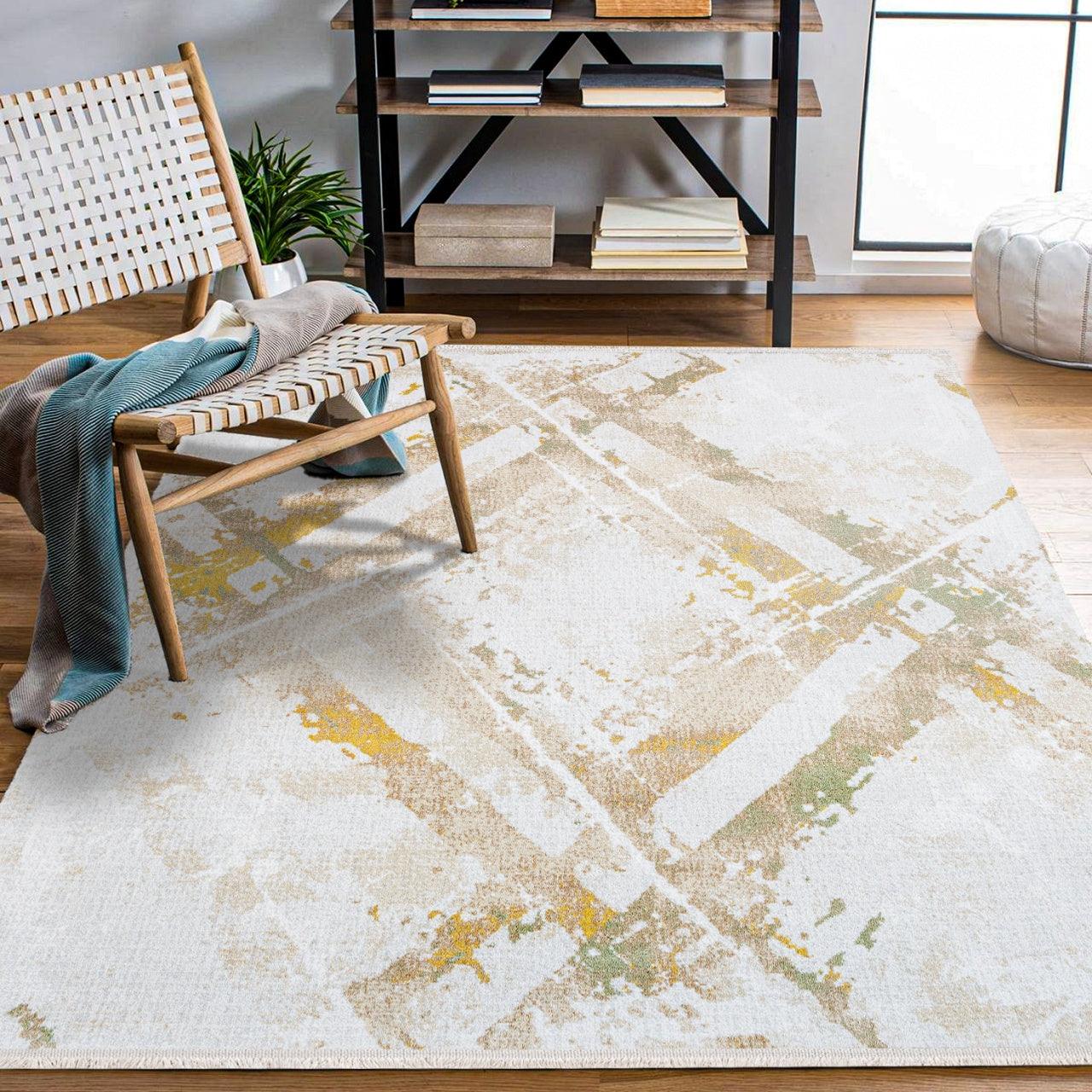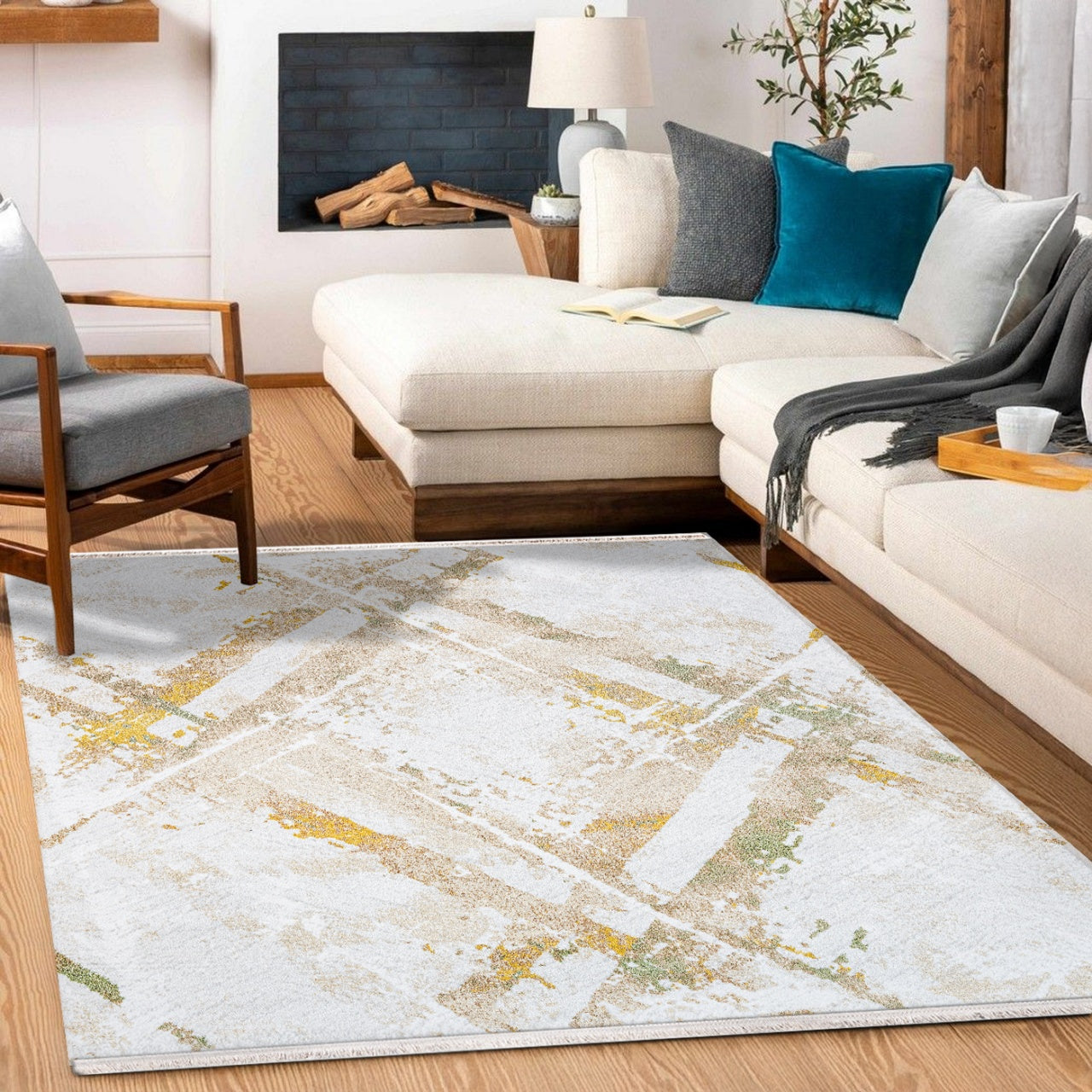 Itzel Krem Geometrik Akrilik Makine Halısı