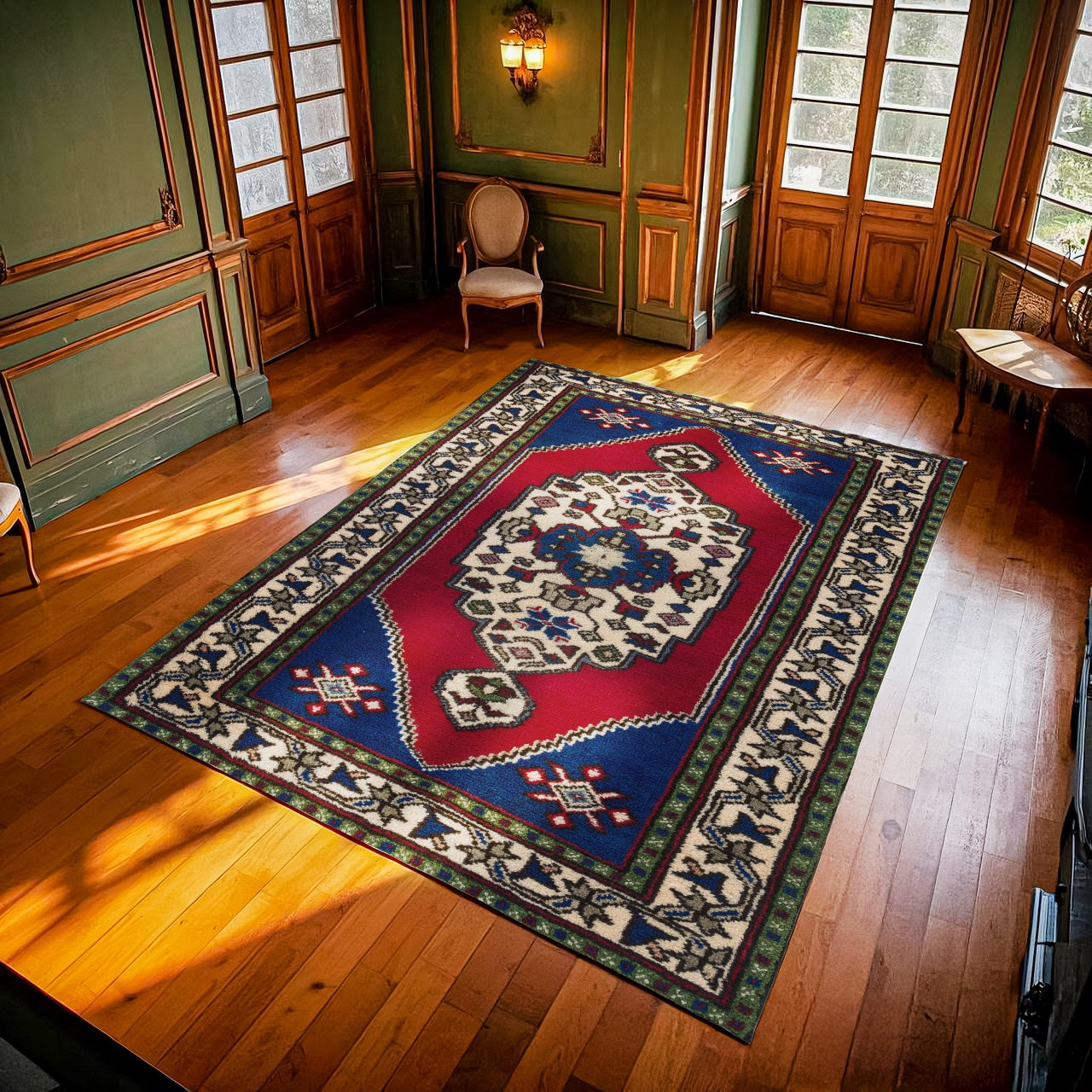 Mavi Madalyon Modern Etnik Desenli Halı | Makinada Yıkanabilir | Hav Toz Vermez | Leke Tutmayaz | Kaymaz Taban | Dijital Makine Baskı | Salon Yolluk Mutfak Halısı