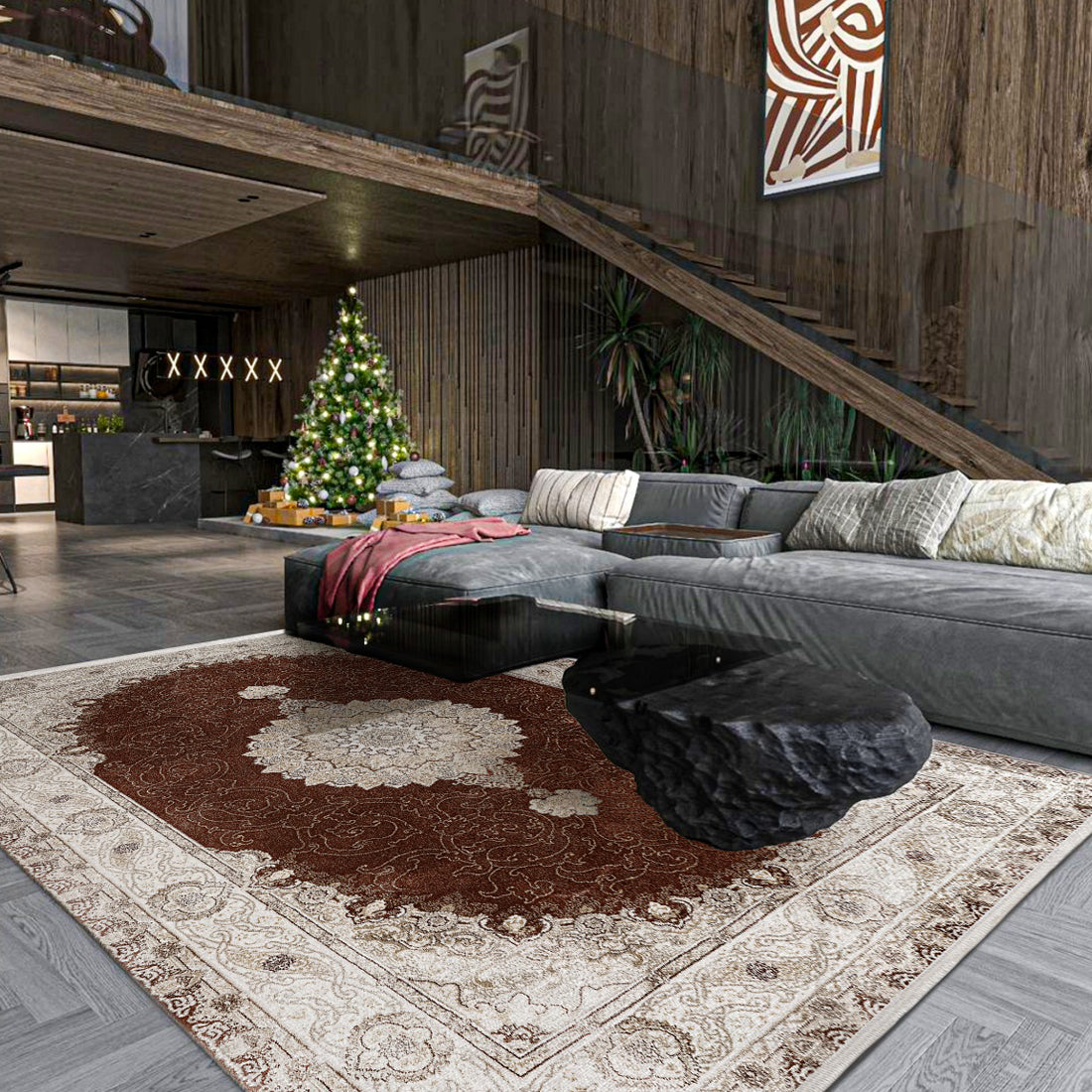 Barnaul Kahverengi Çizgili Dijital Baskı Halı