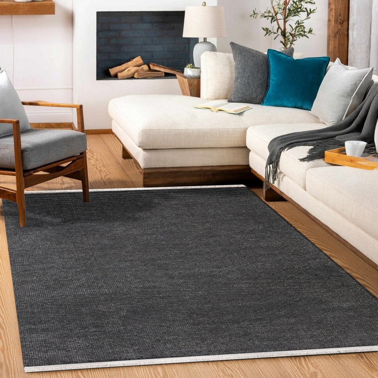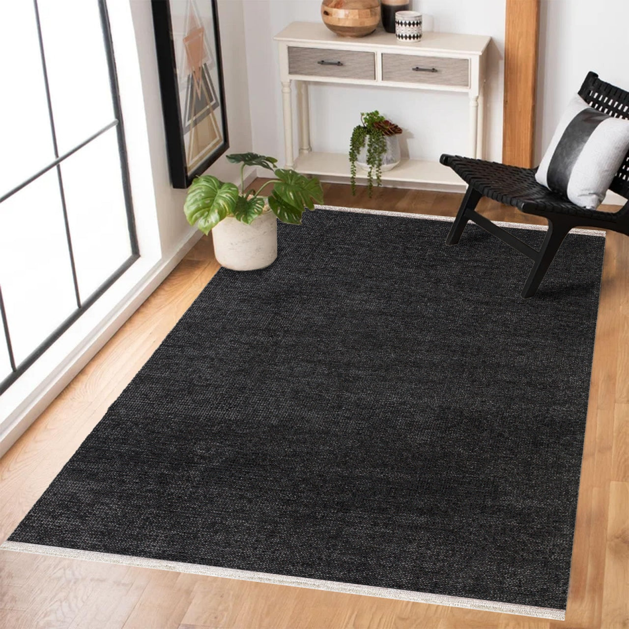 Antrasit Düz Modern Etnik Desenli Halı
