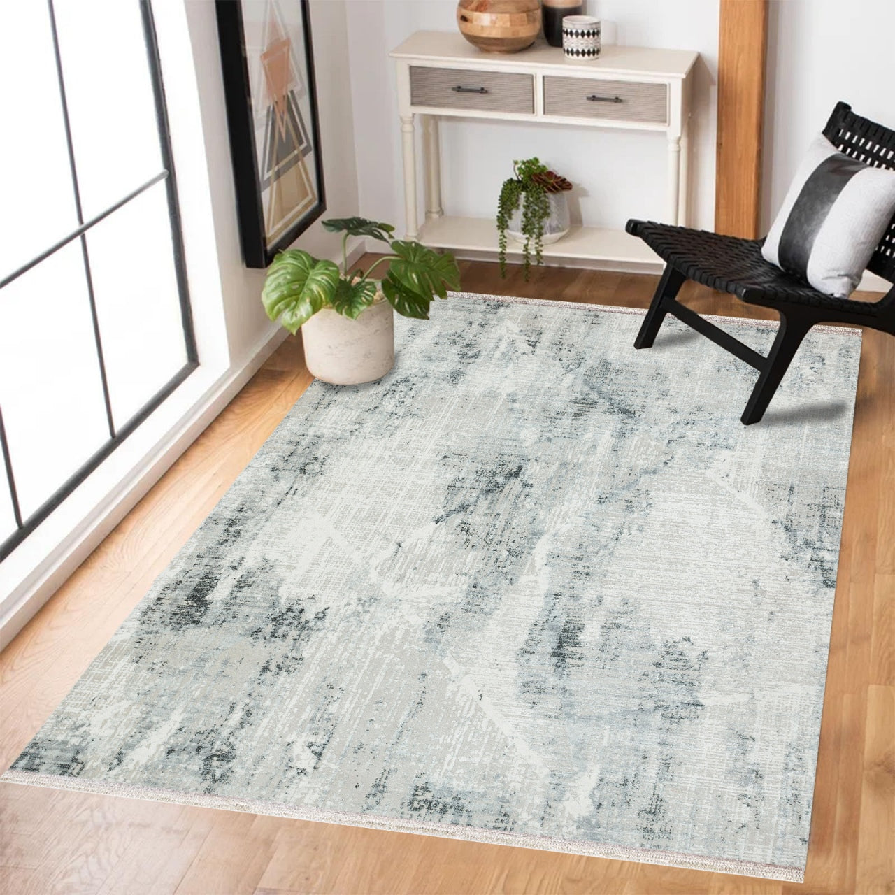 Gri Soyut Modern Etnik Desenli Halı | Makinada Yıkanabilir | Hav Toz Vermez | Leke Tutmayan | Kaymaz Taban | Dijital Makine Baskı | Salon Yolluk Mutfak Halısı