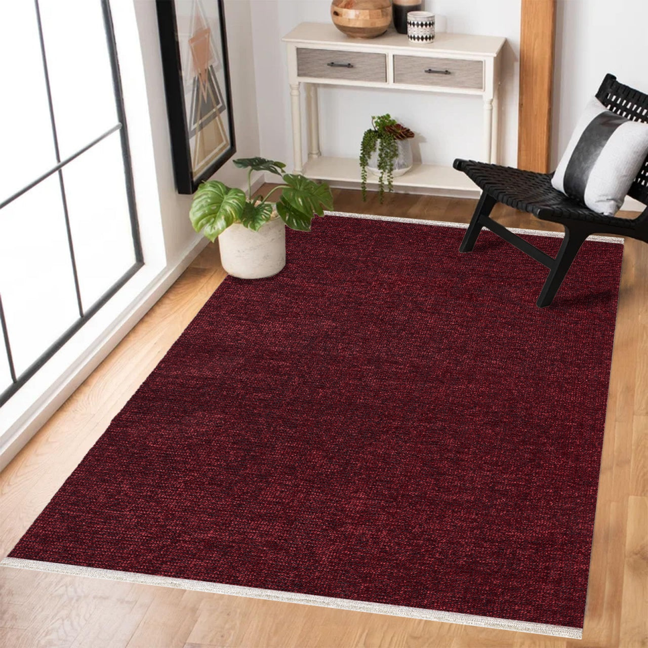Kırmızı Düz Modern Etnik Desenli Halı  | Makinada Yıkanabilir | Hav Toz Vermez | Leke Tutmayan | Kaymaz Taban | Dijital Makine Baskı | Salon Yolluk Mutfak Halısı
