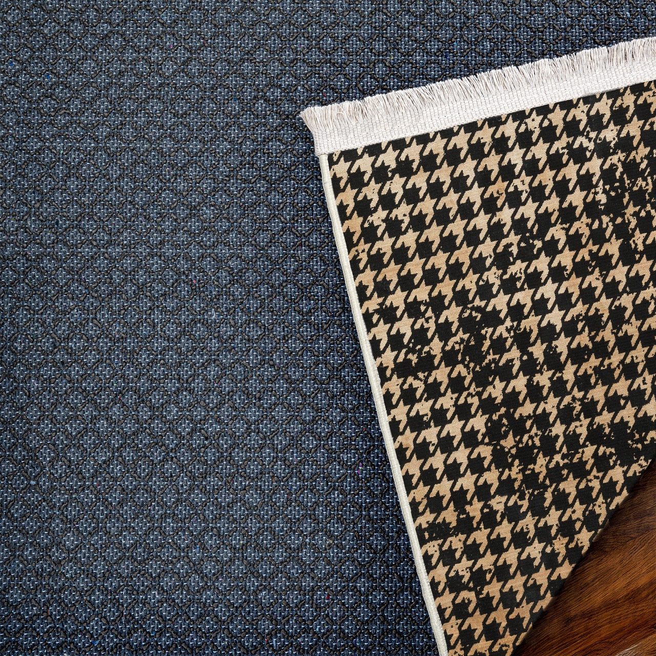 Siyah Kazayağı Modern Etnik Desenli Halı | Makinada Yıkanabilir | Hav Toz Vermez | Leke Tutmayan | Kaymaz Taban | Dijital Makine Baskı | Salon Yolluk Mutfak Halısı