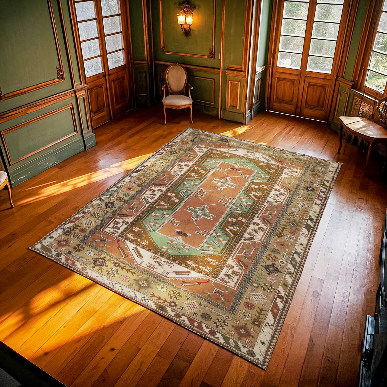 Turuncu Madalyon Modern Etnik Desenli Halı | Makinada Yıkanabilir | Hav Toz Vermez | Leke Tutmayan | Kaymaz Taban | Dijital Makine Baskı | Salon Yolluk Mutfak Halısı