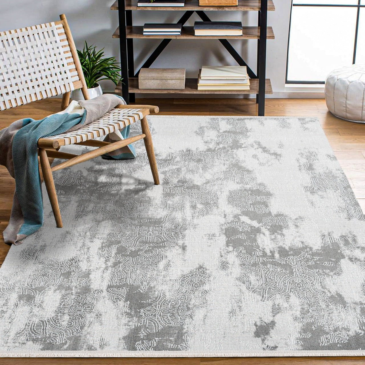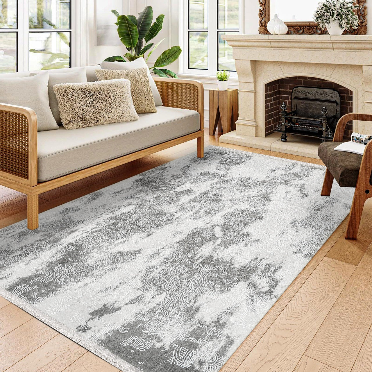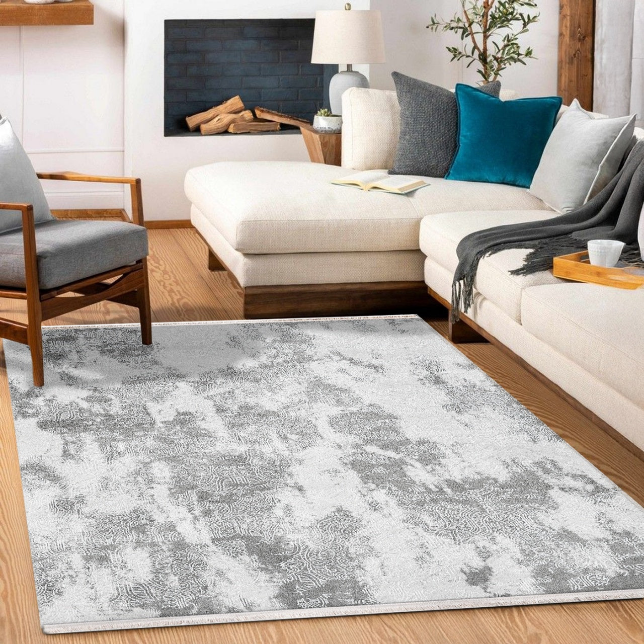 Alanay Gri Modern Bambu Akrilik Makine Halısı