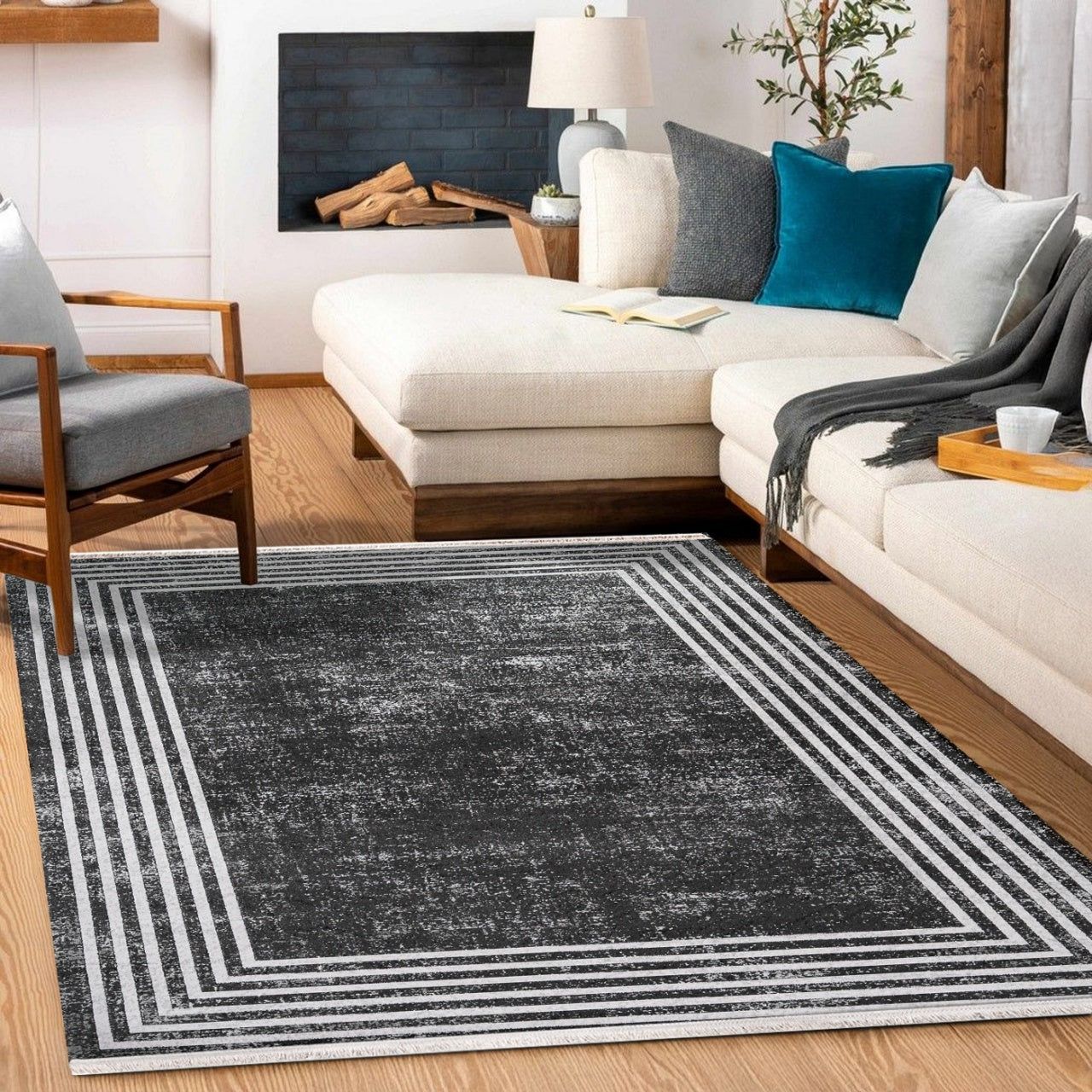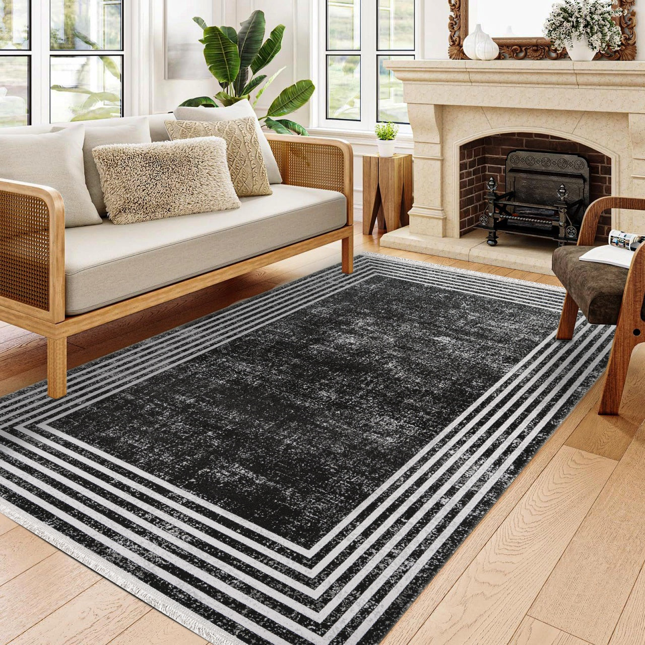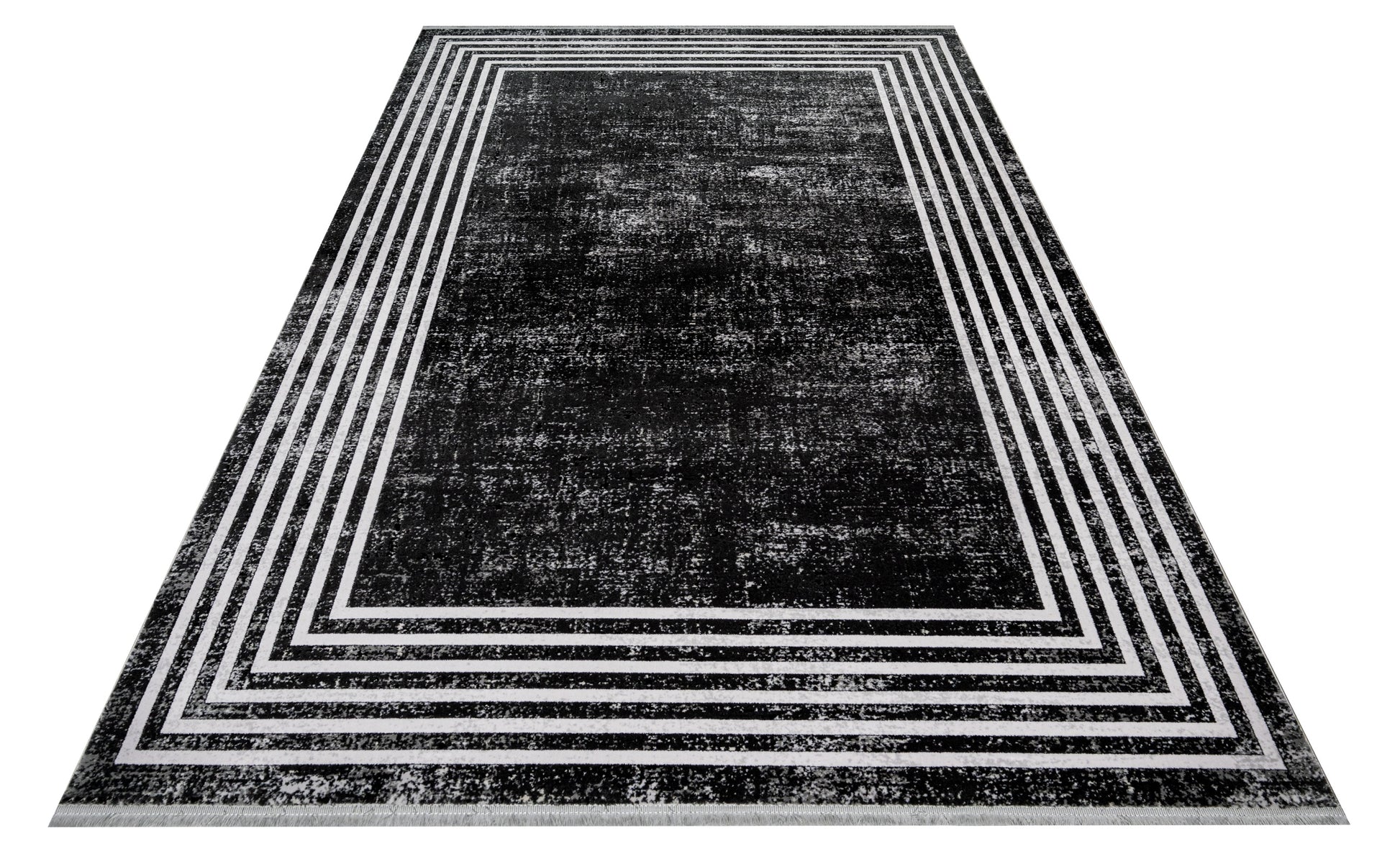 Aniyah Gri Çerçeveli Triko Akrilik Makine Halısı