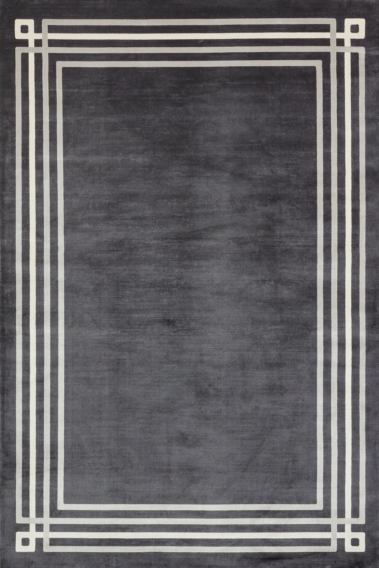 Antrasit Çerçeveli Modern Etnik Desenli Halı