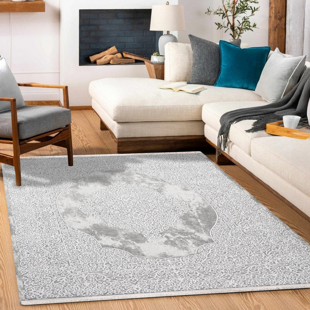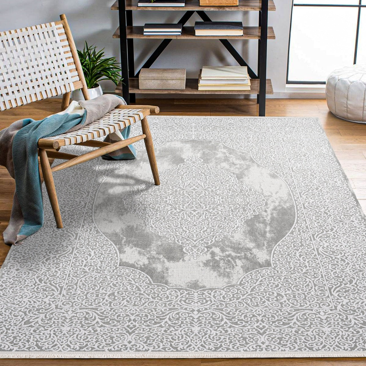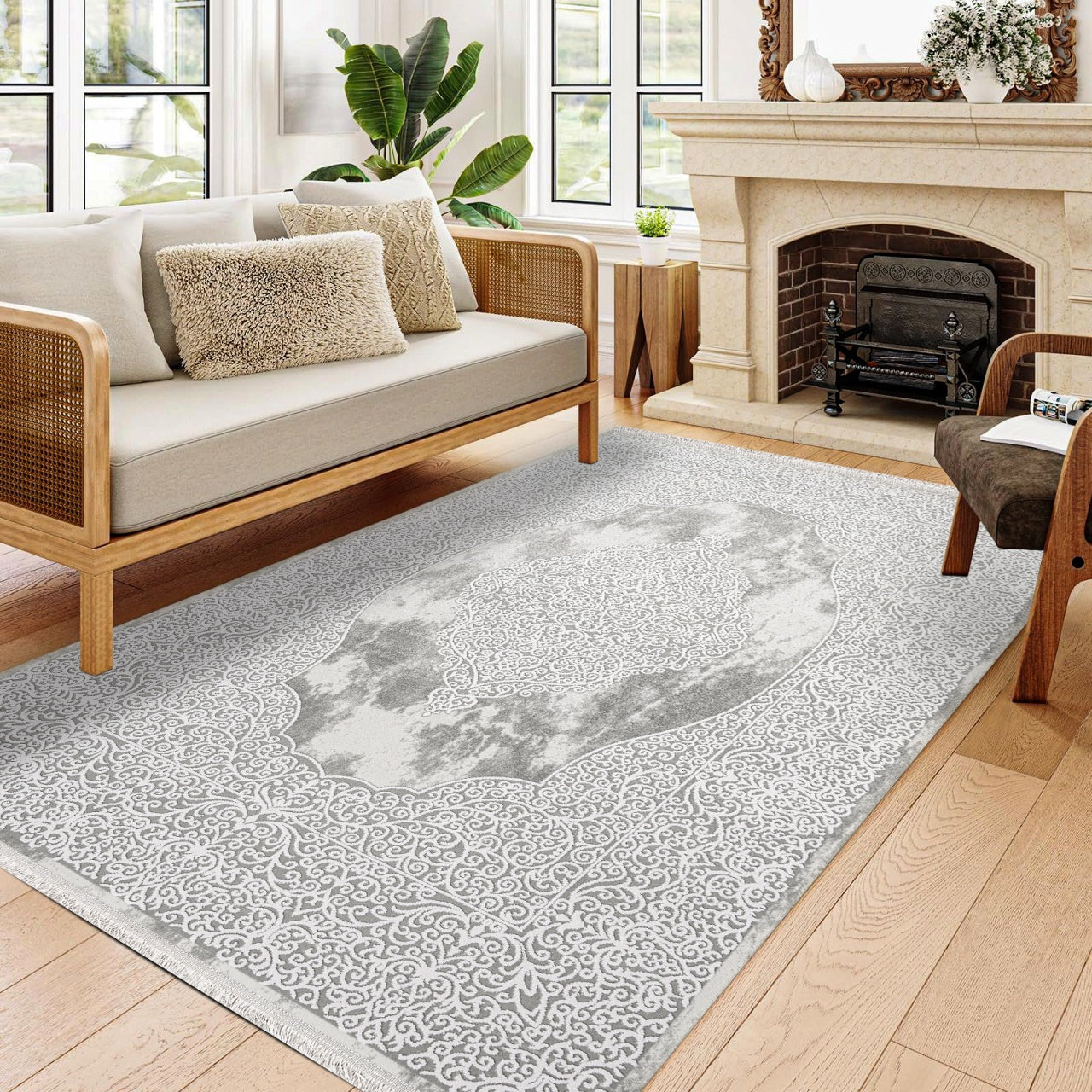 Arabella Gri Klasik Bambu Akrilik Makine Halısı