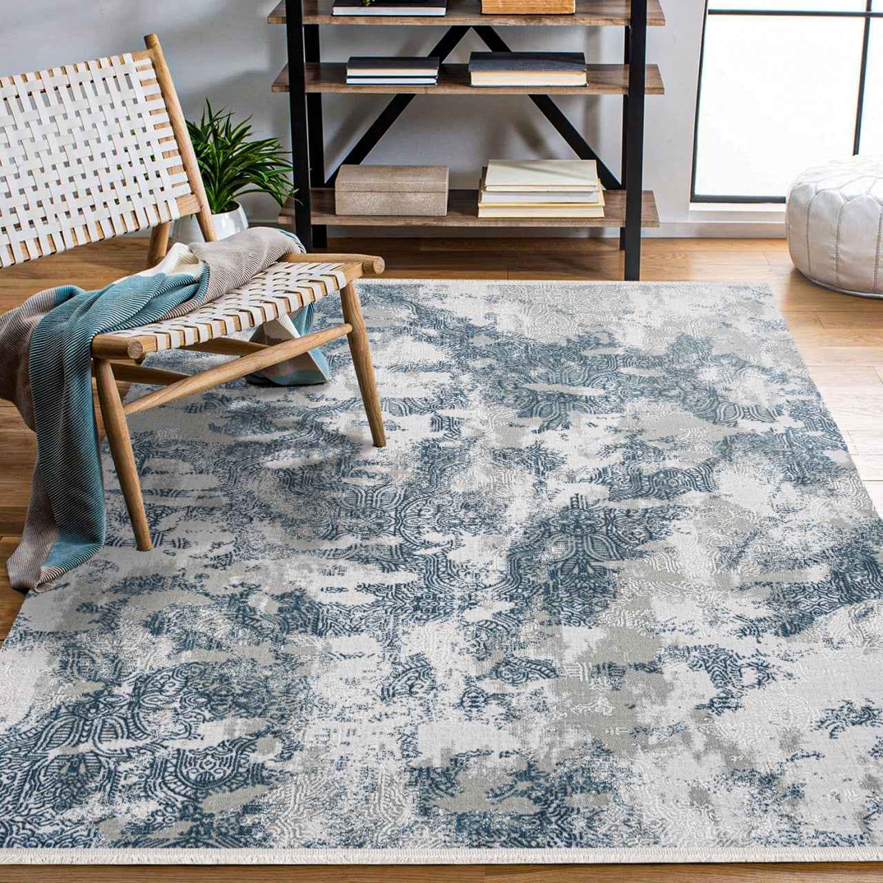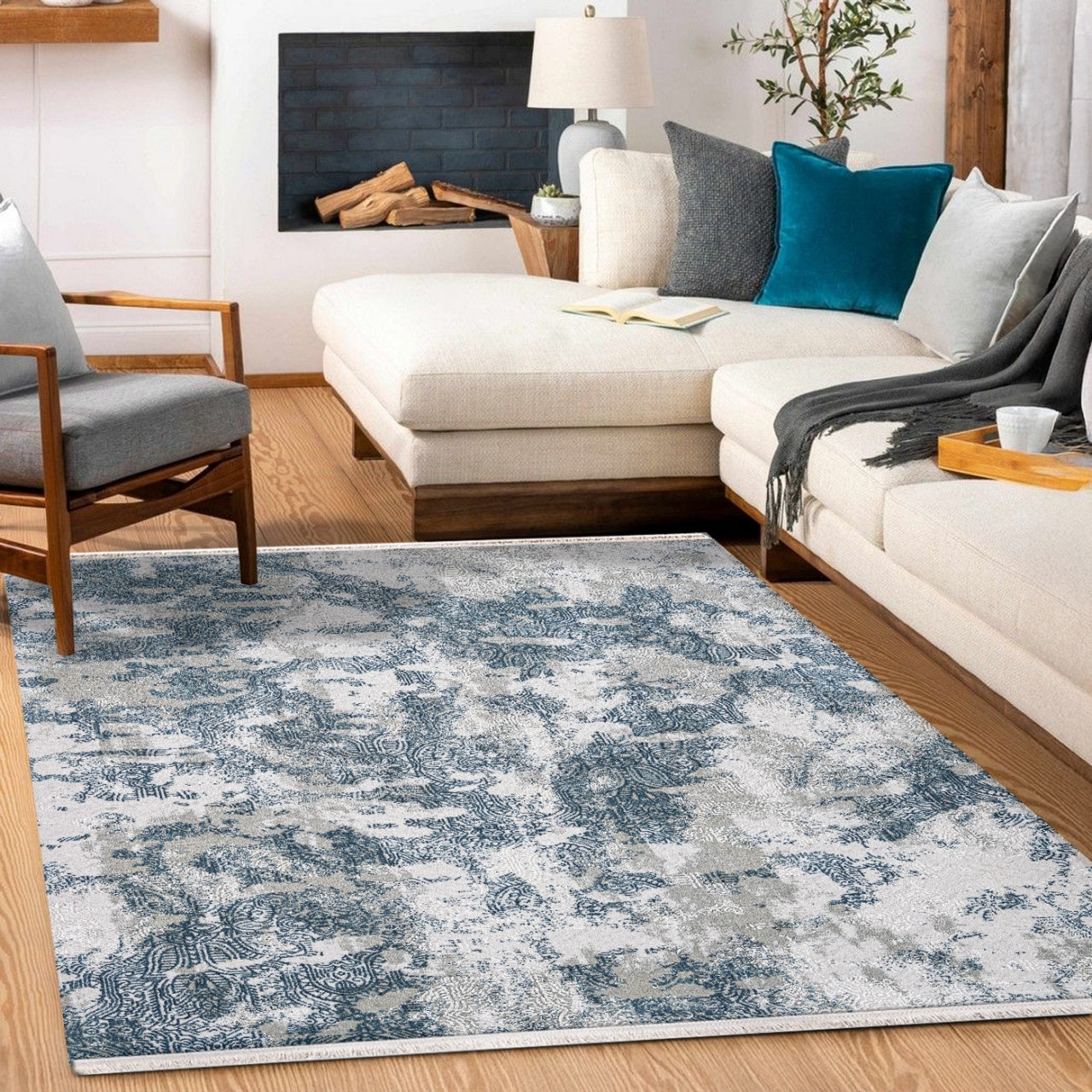 Arielo Mavi Modern Bambu Akrilik Makine Halısı