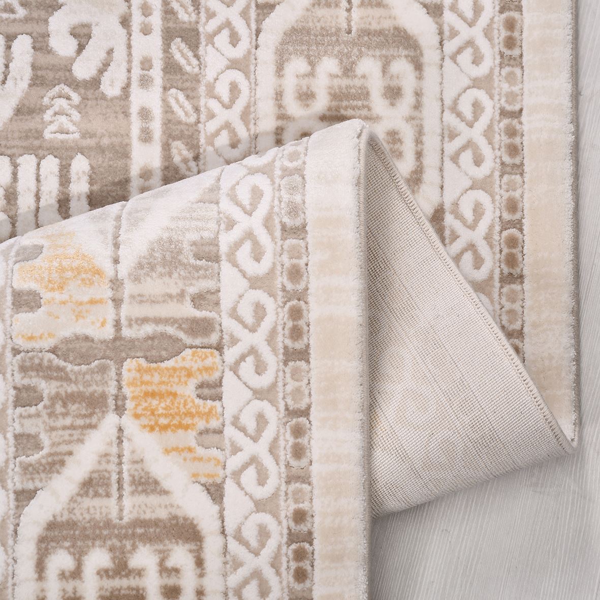 - Anahtar Kelimeler: Bej halı, makine halısı, akrilik halı, çerçeveli halı, salon halısı, oturma odası halısı, koridor halısı, Crea halı, etnik desenli halı, antialerjik halı