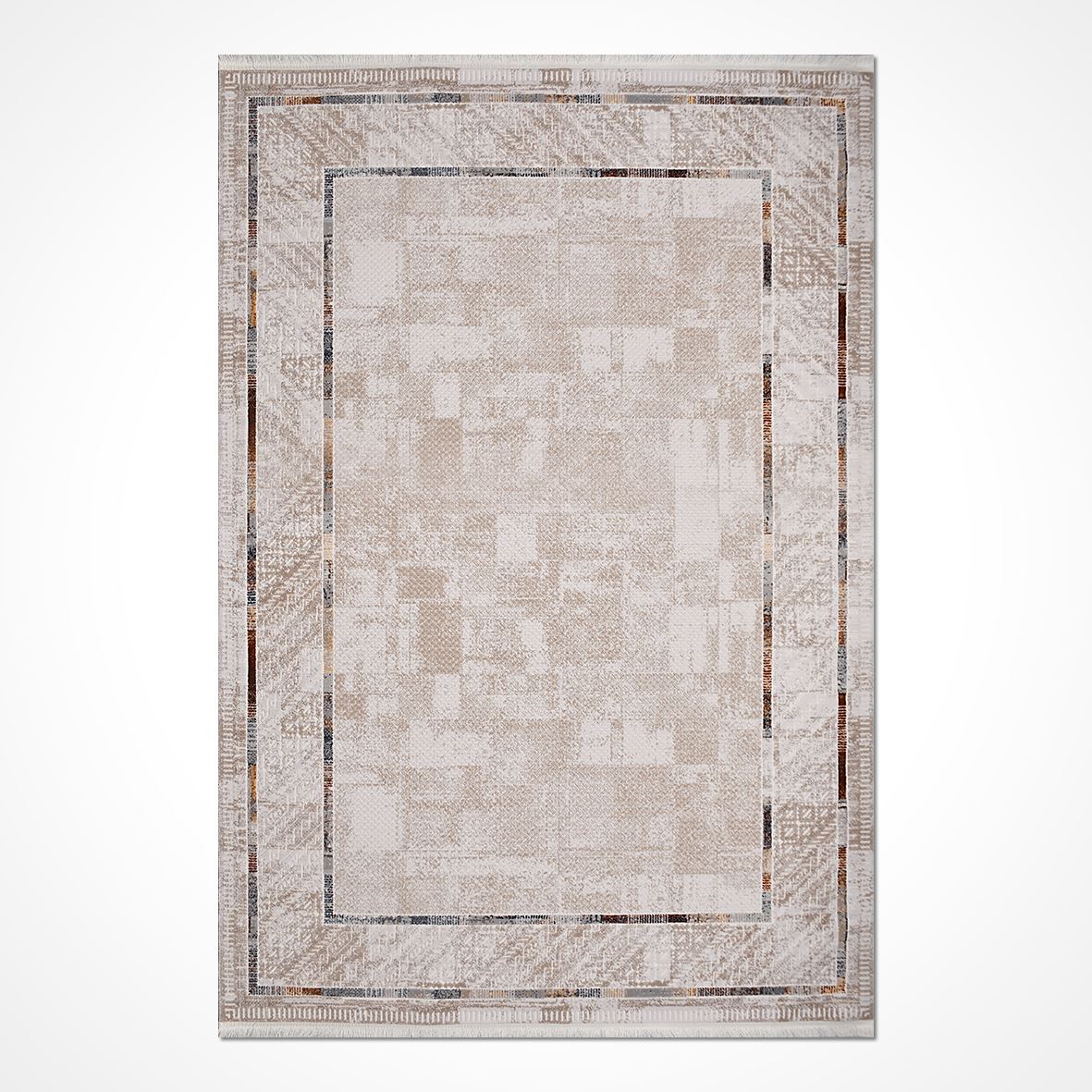 Bej Çerçeveli Akrilik Makine Halısı - Crea Santorina Koleksiyonu