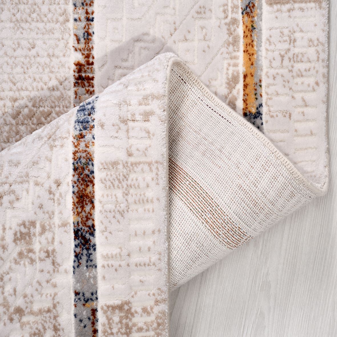 Halıdaki akrilik ve viskon karışımı, hem dayanıklılığı artırır hem de halıya parlak ve canlı bir görünüm verir. Pamuk taban ise, halının yere daha iyi tutunmasını sağlar ve kayma riskini azaltır. Bu sayede, halınız hem güvenli hem de uzun ömürlü olur.