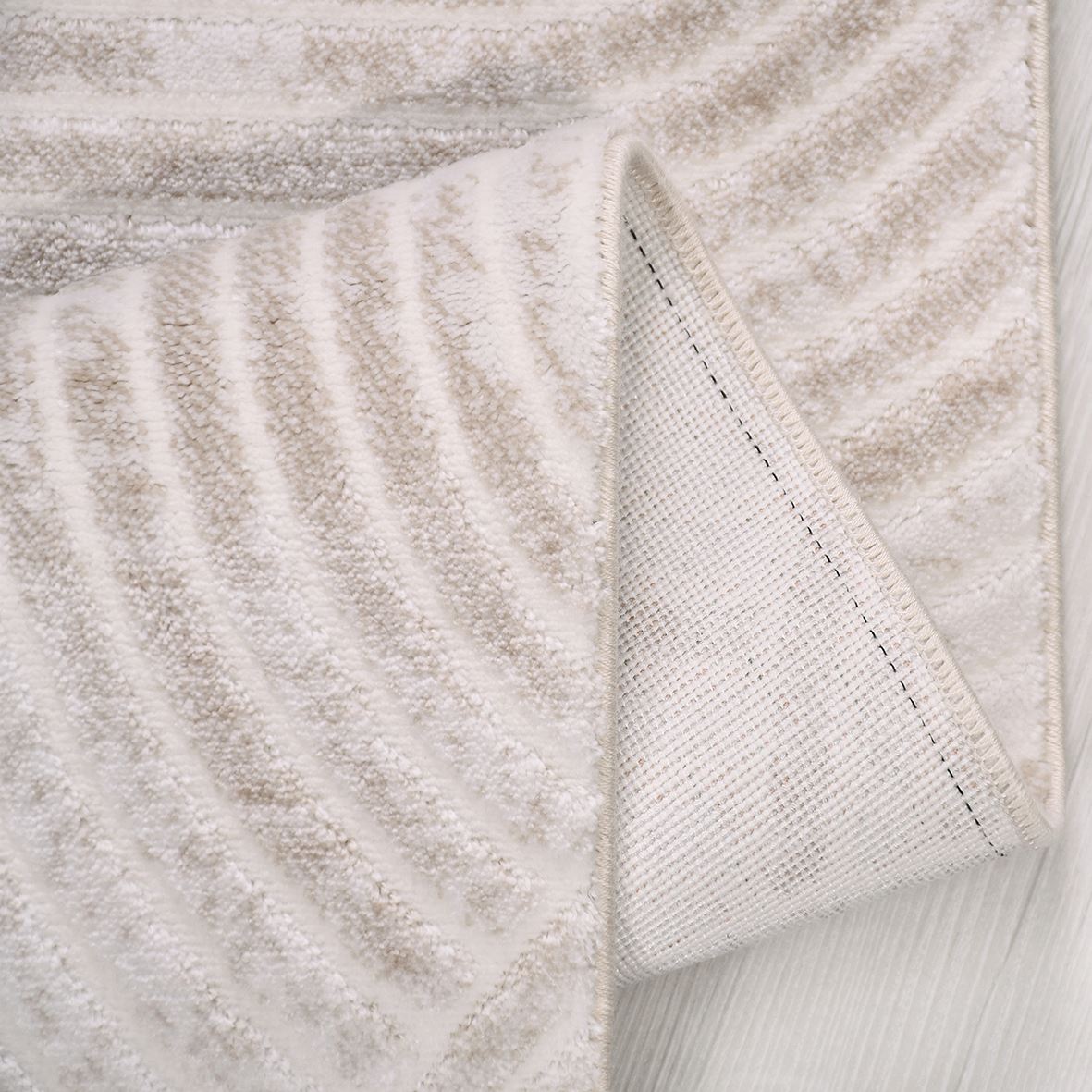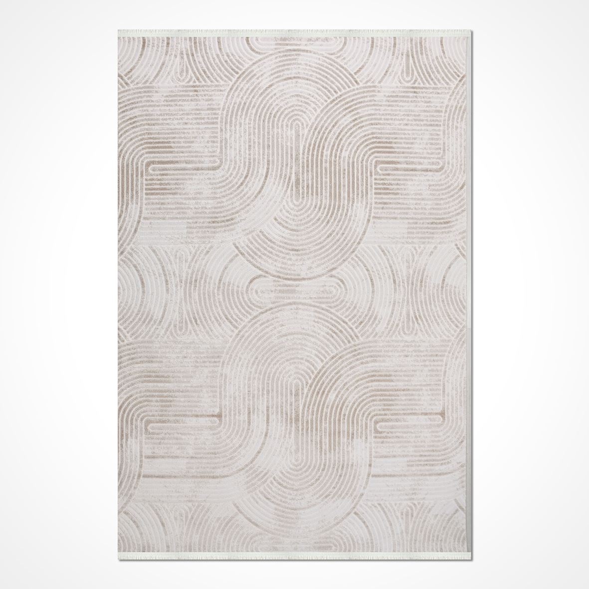 Bej Geometrik Akrilik Makine Halısı