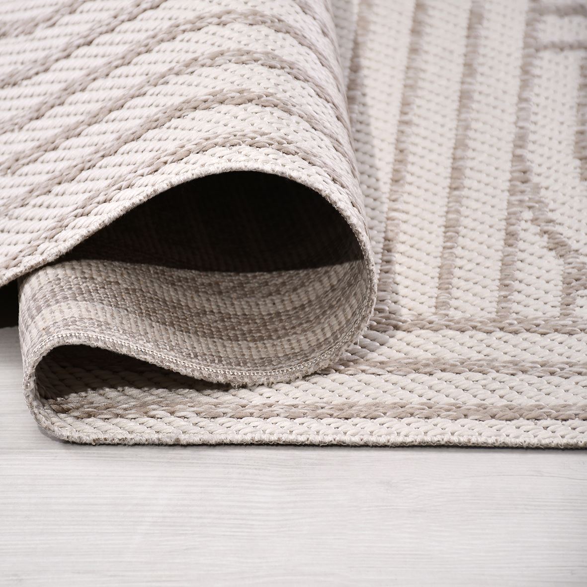 Bej Geometrik Pamuk Makine Halısı