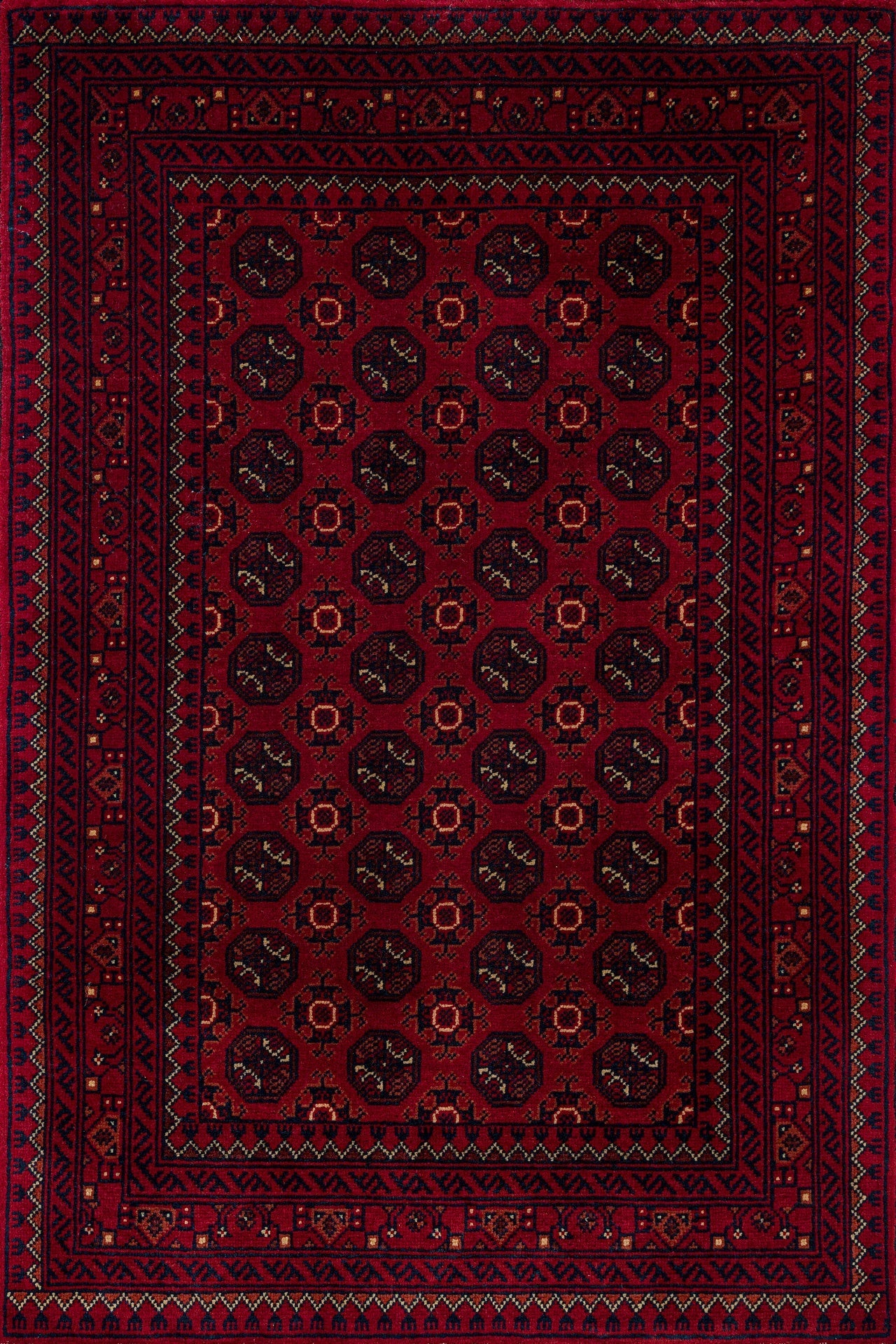 Bordo Bordürlü Modern Etnik Desenli Halı