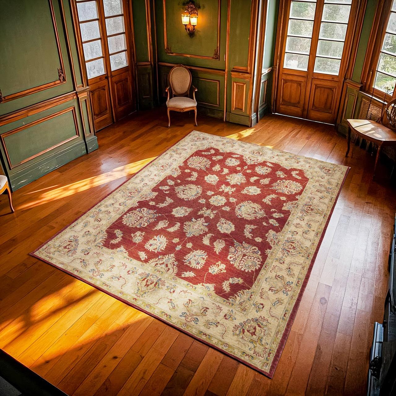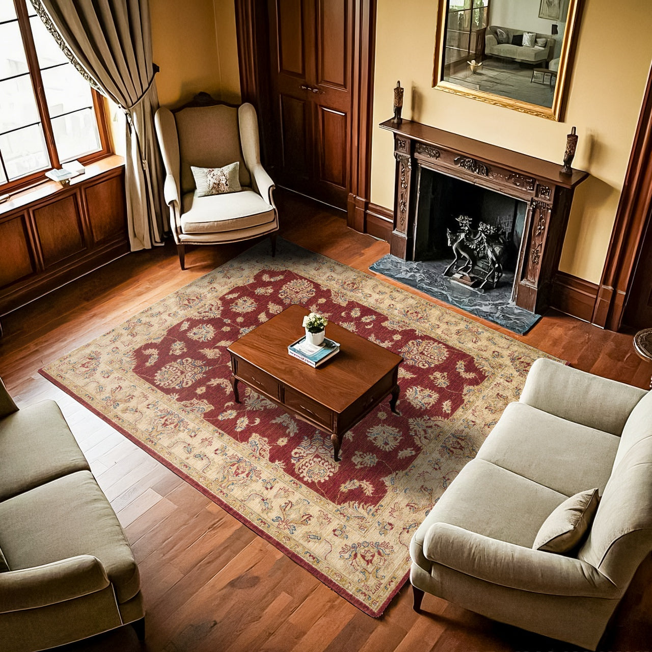 Bordo Çiçekli Modern Etnik Desenli Halı