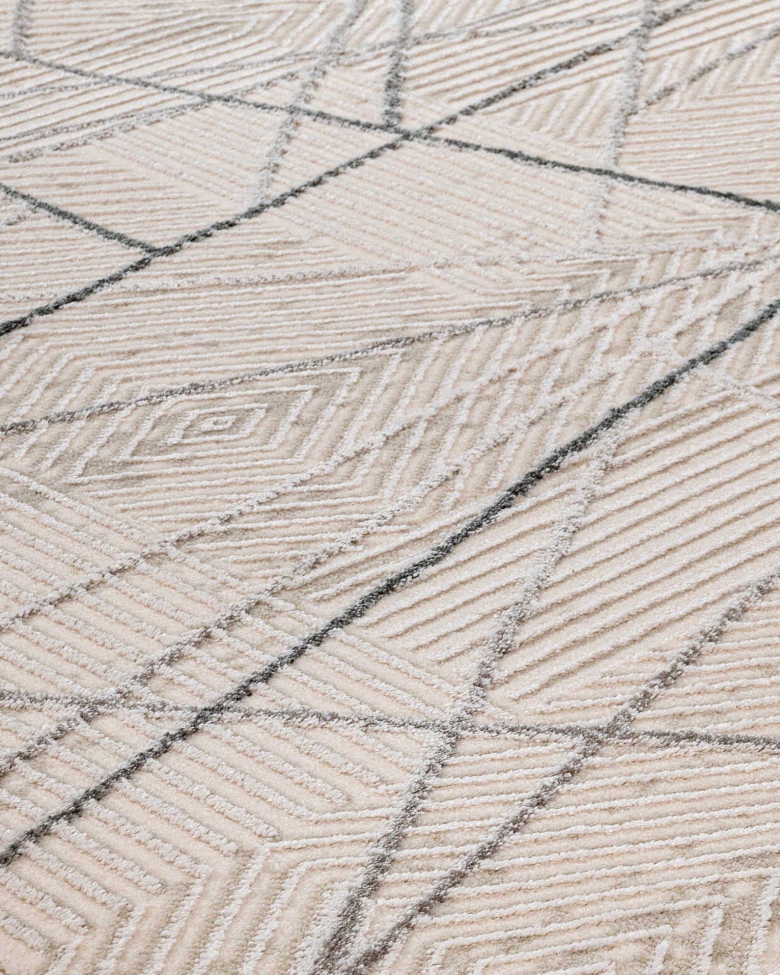 Canna-lily Gri Geometrik Pamuk Makine Halısı