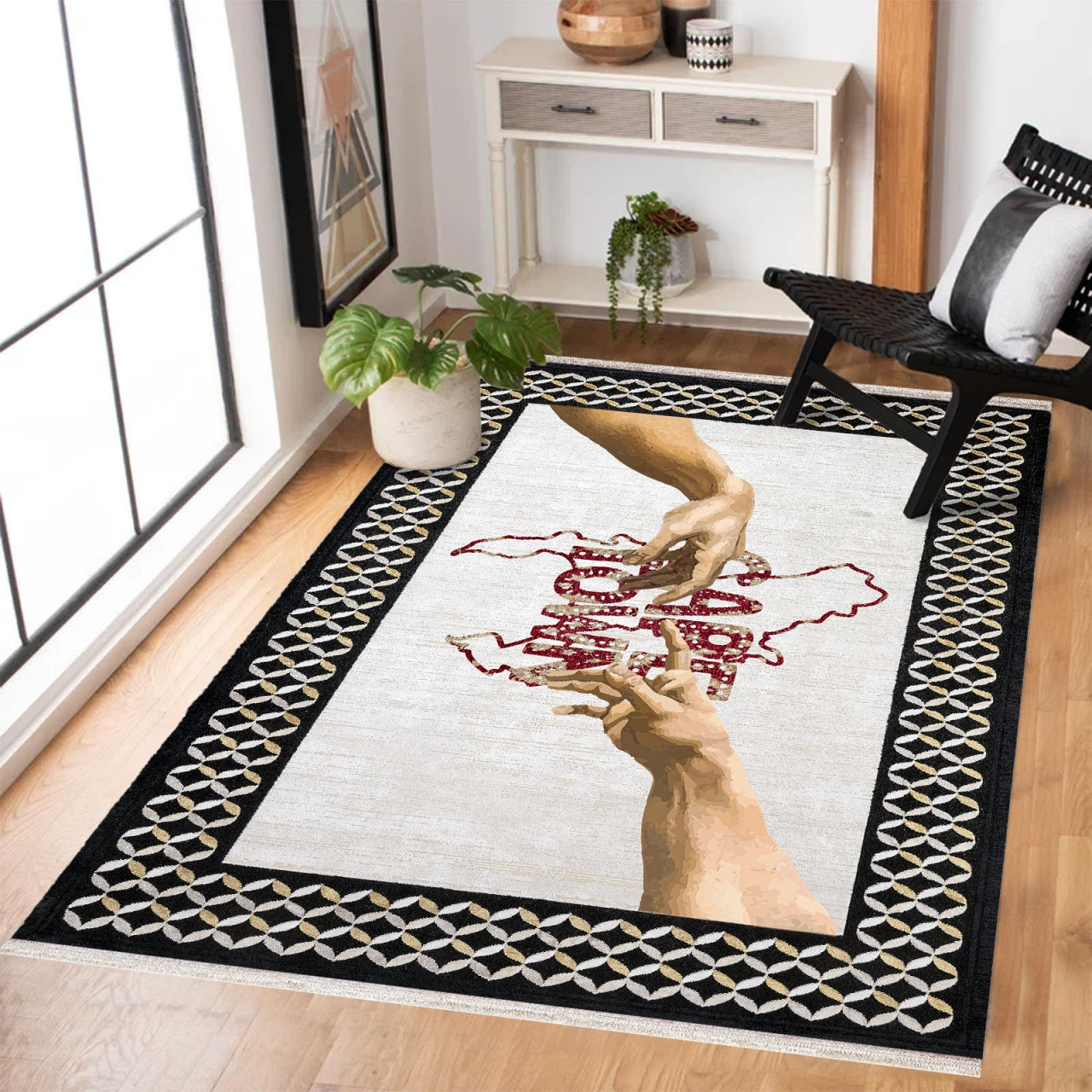 Bu sanatsal halı, oturma odalarından çalışma alanlarına kadar her mekânda sofistike bir hava katmak için ideal bir tercihtir. Şimdi sipariş verin ve yaşam alanlarınıza estetik bir dokunuş ekleyin!