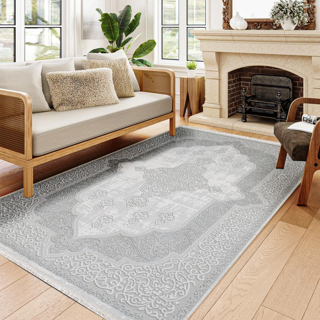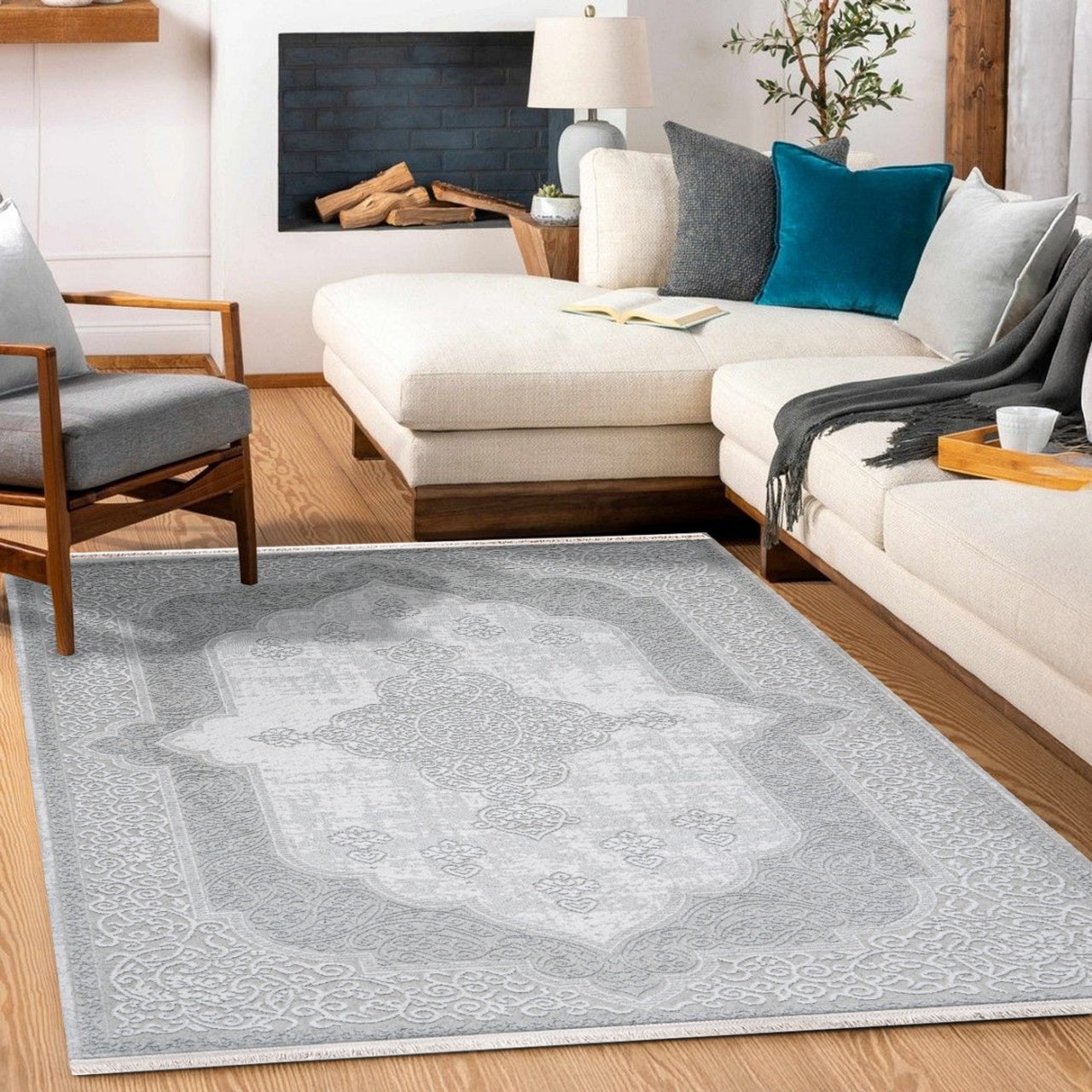 Charlee Krem Göbekli Akrilik Makine Halısı
