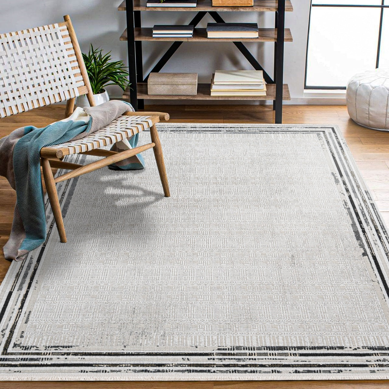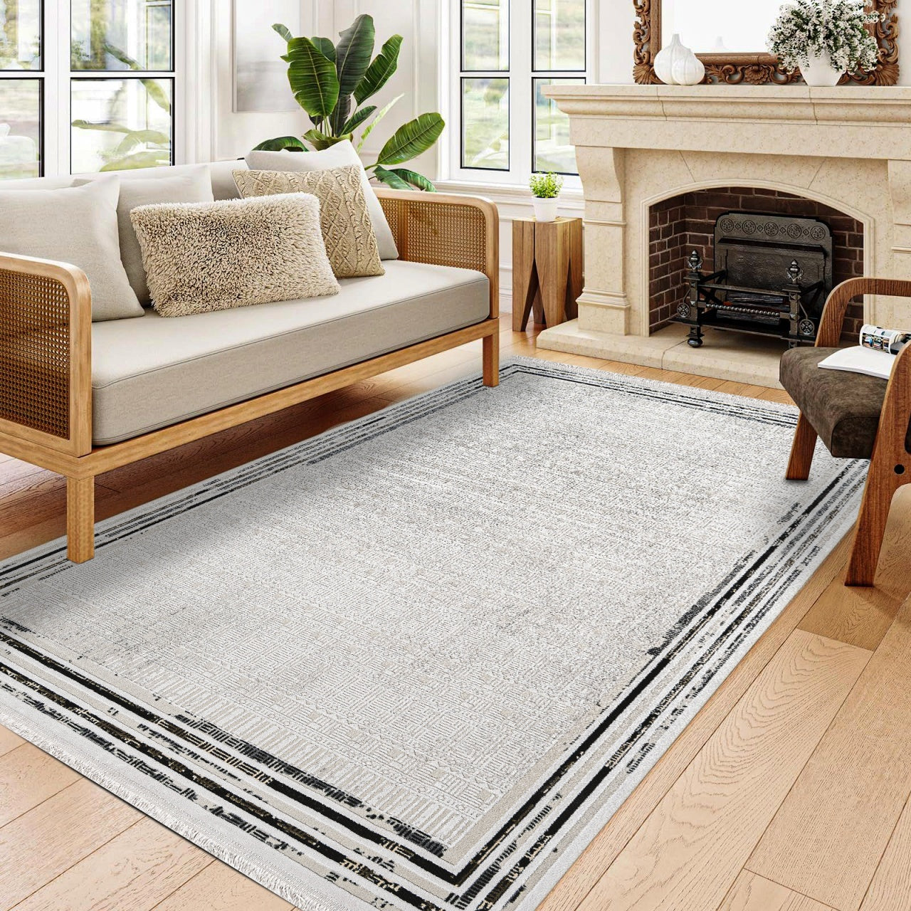 Elizay Gri Çerçeveli Akrilik Triko Makine Halısı
