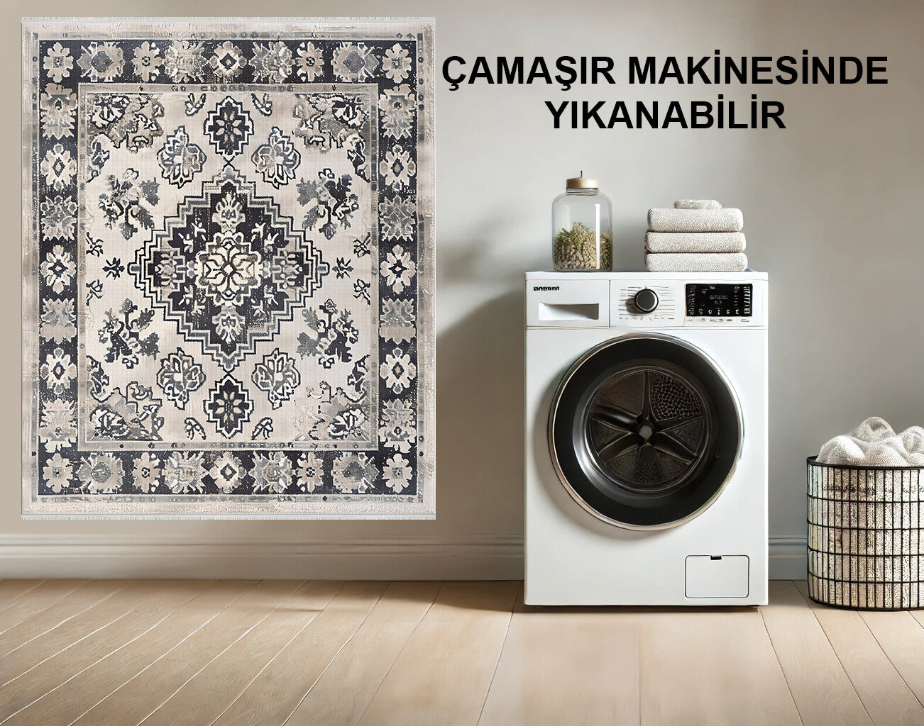 HALINET Eskitilmiş Siyah ve Gri Oryantal Yıkanabilir Halı her zevke uygunluğu ile evlerinize şıklık katacaktır.