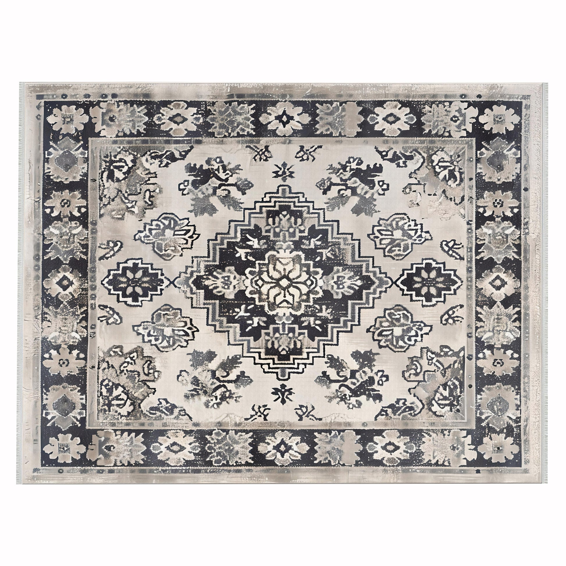 Eskitilmiş Siyah ve Gri Oryantal Yıkanabilir Halı